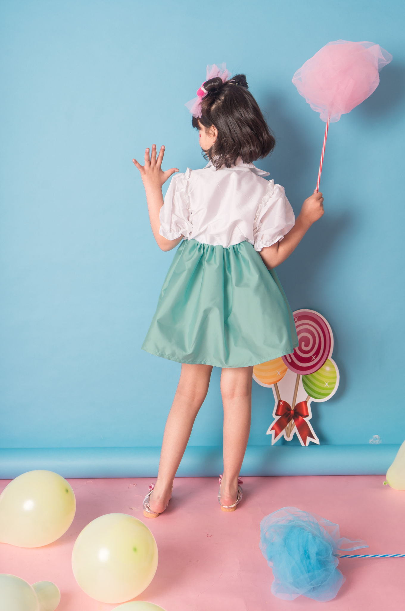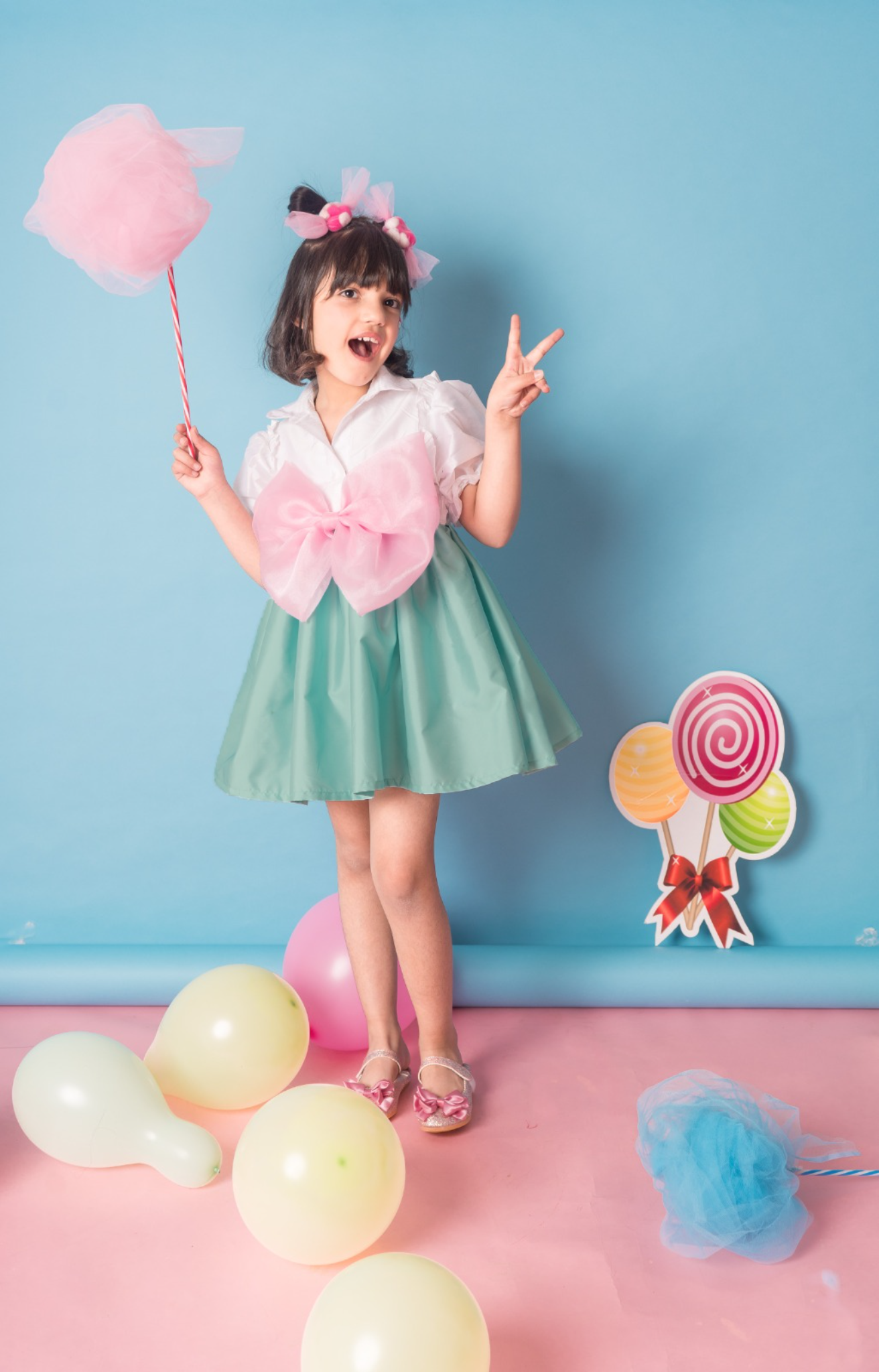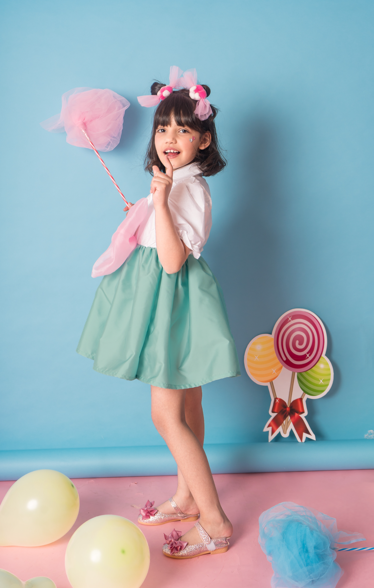 - A dash of candy for the little munchkins in minty Marshmallow treat dress.