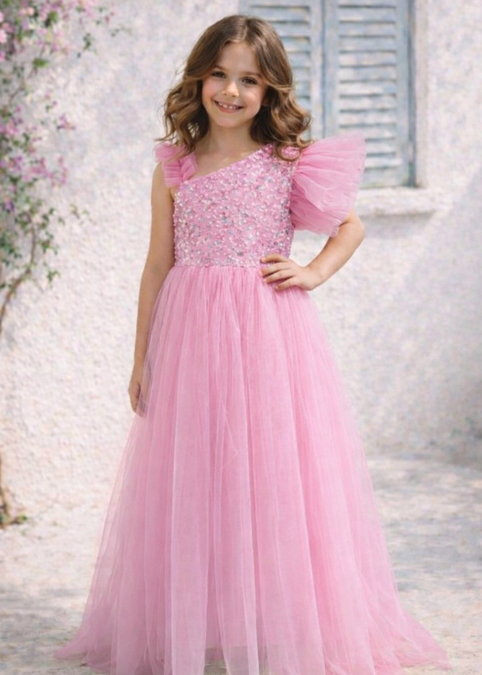 Blush Haze Flower Gown