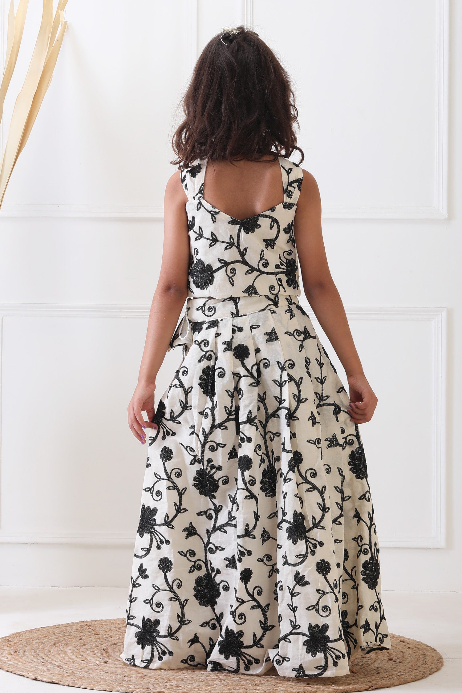 Step into the spotlight with this Black Resham Embroidered Lehenga! Its intricate resham embroidery adds a touch of elegance and charm, perfect for twirling at festive celebrations or special occasions.