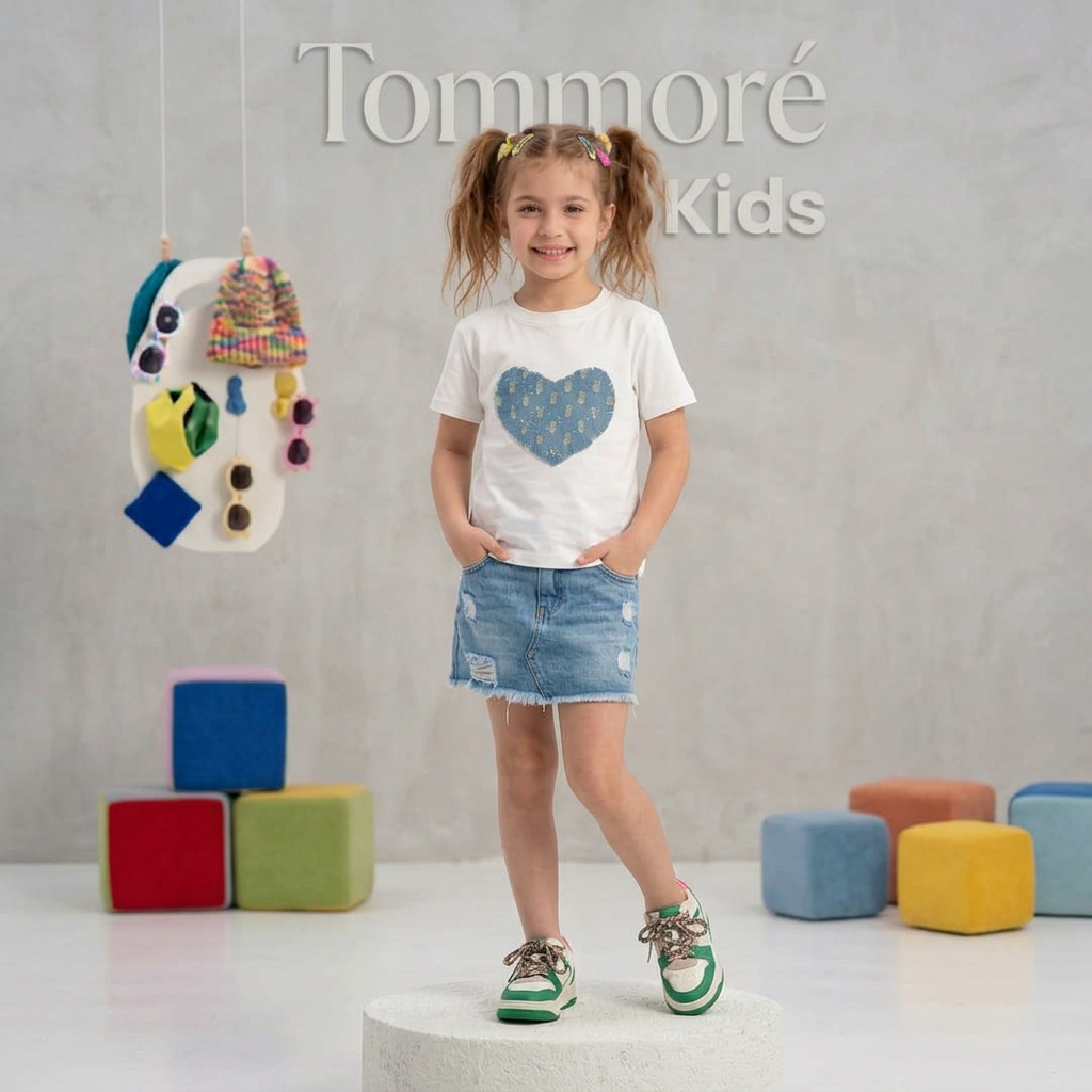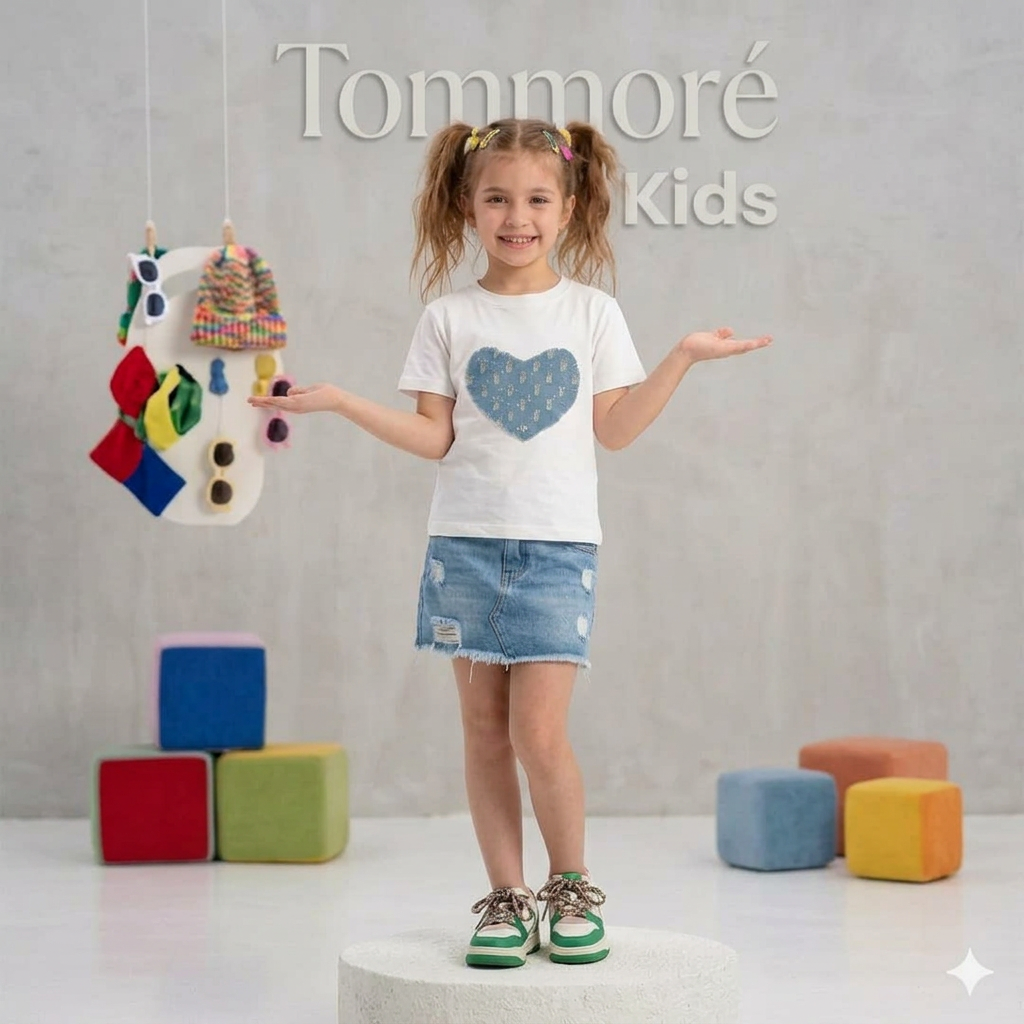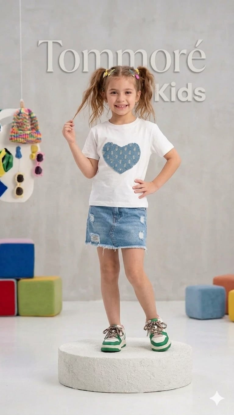 Adorable blue top featuring a charming heart design, perfect for everyday wear. Regular fit with short sleeves and a comfortable short length that's ideal for active kids. Soft, breathable fabric keeps little ones cool and comfortable all day long. A versatile wardrobe essential that pairs easily with jeans, skirts, or leggings for countless outfit combinations.