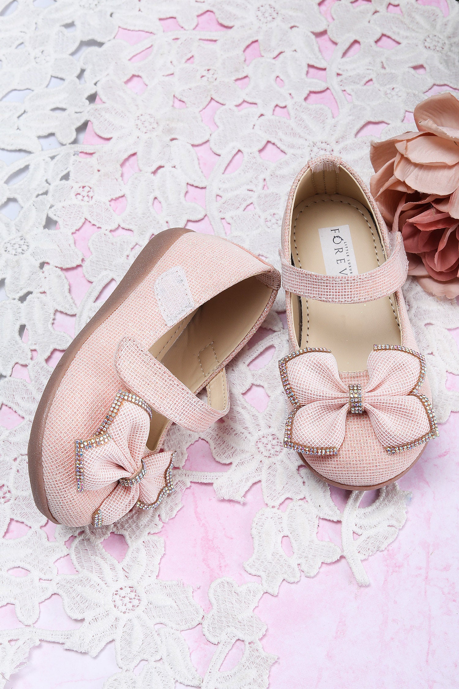 Step into playful elegance with our Blush Twinkle Bow Ballerina shoes!