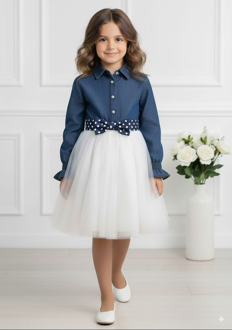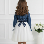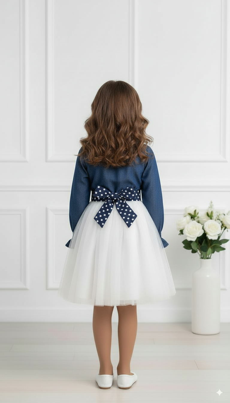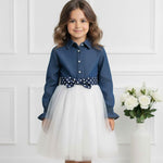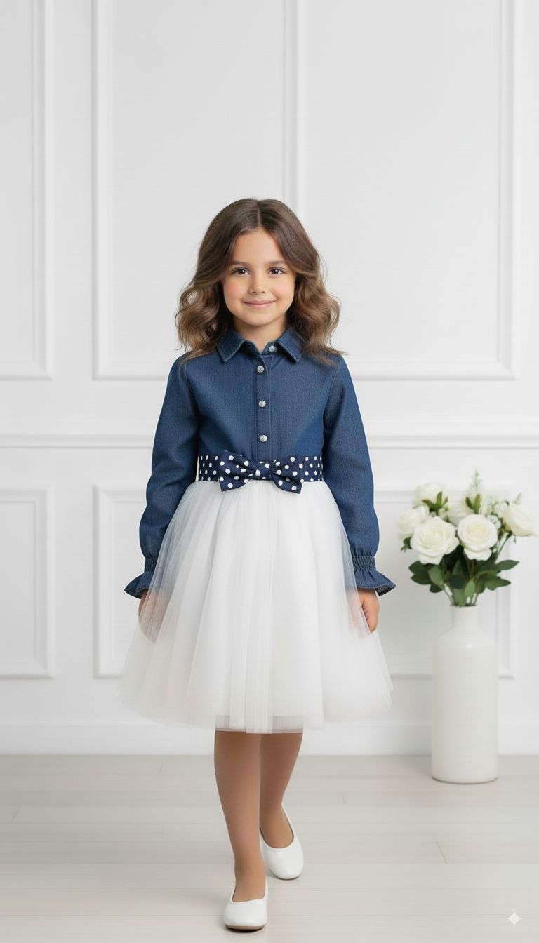This playful dress blends comfy denim with dreamy details, perfect for little ones who love to sparkle at every celebration.