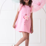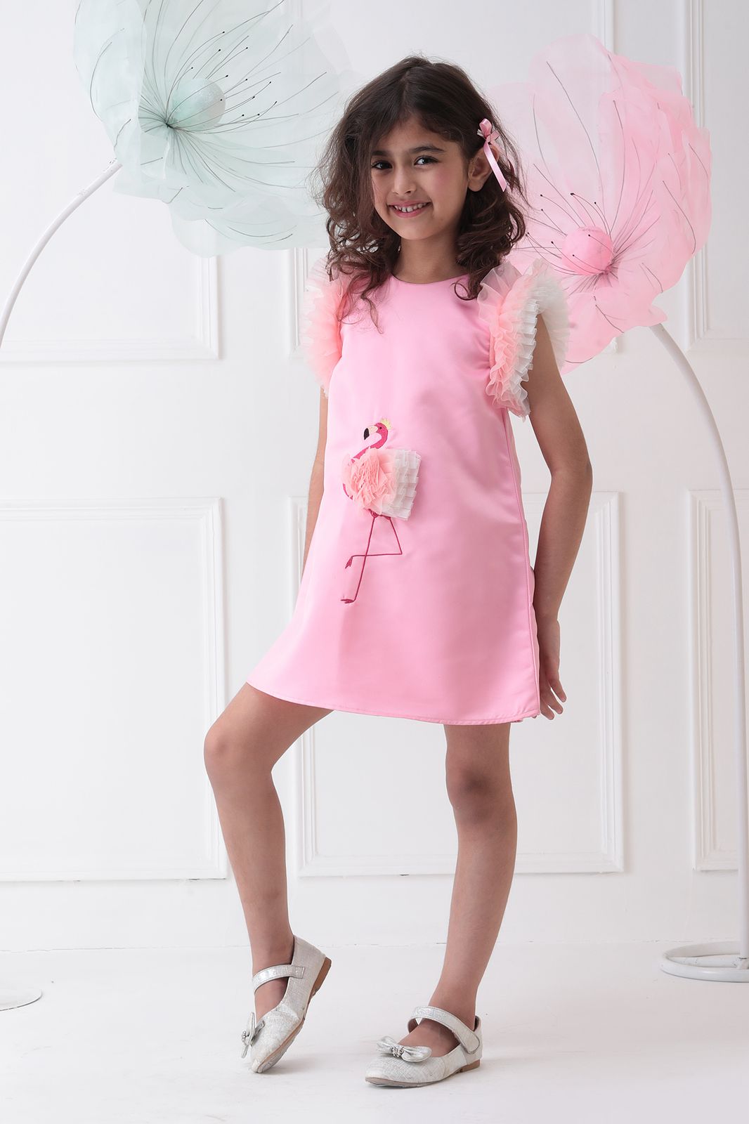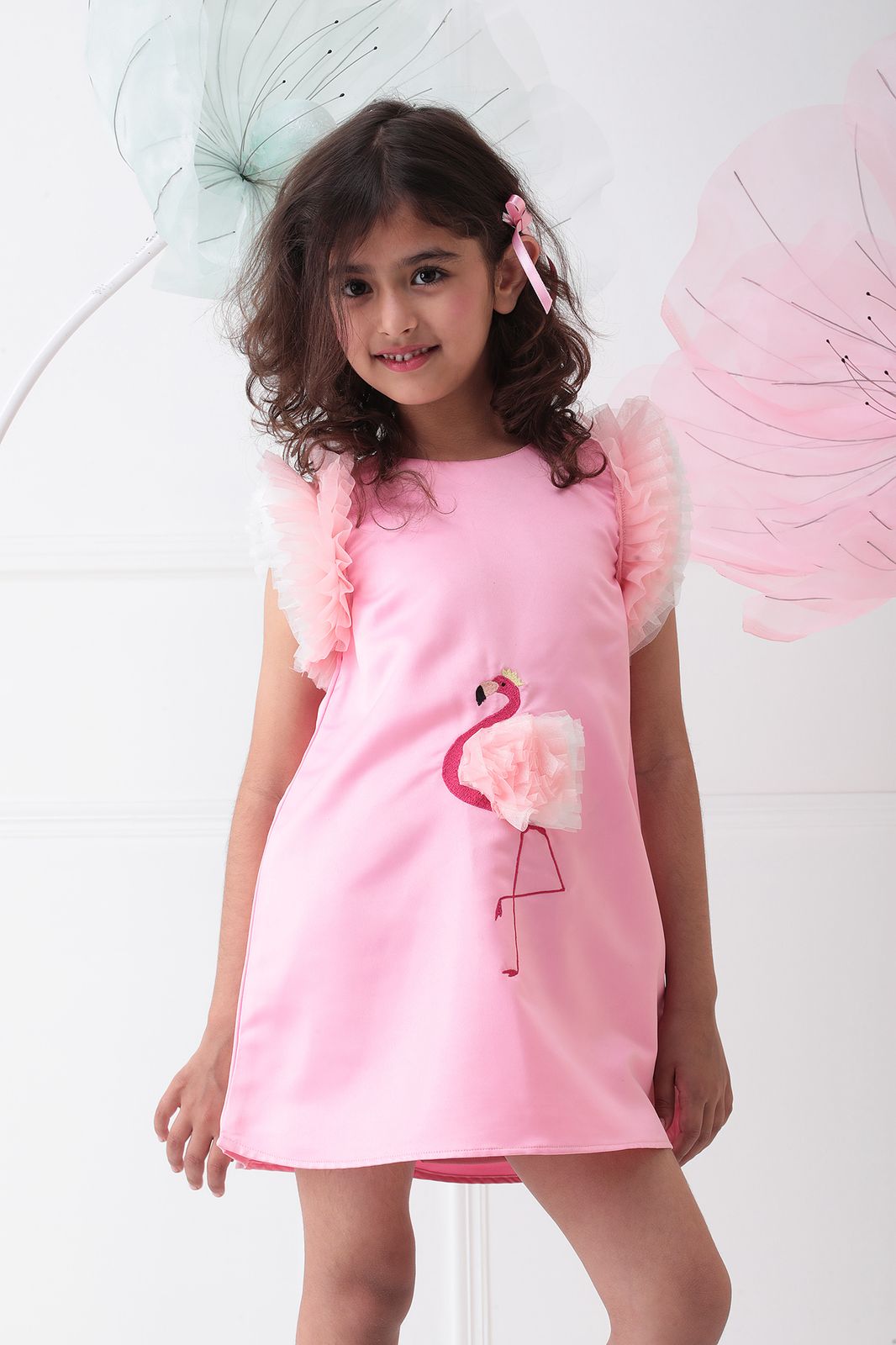 - Dress your little fashionista in pure luxury with our Flamingo Frills Joy Tunic Dress.