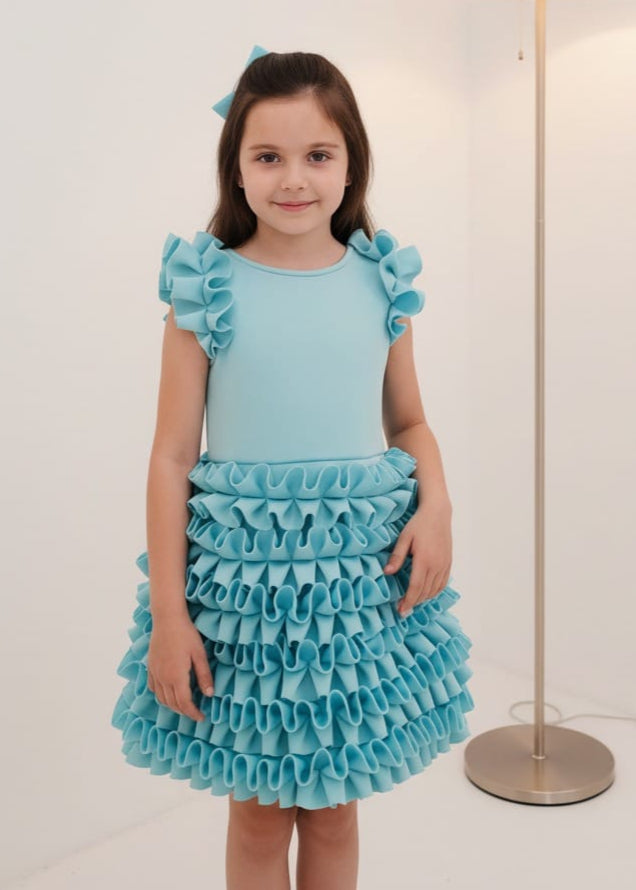 - Get ready to sparkle in the Frosted Frills Party Dress! This delightful dress features soft, frosted frills that add a playful bounce to every twirl.