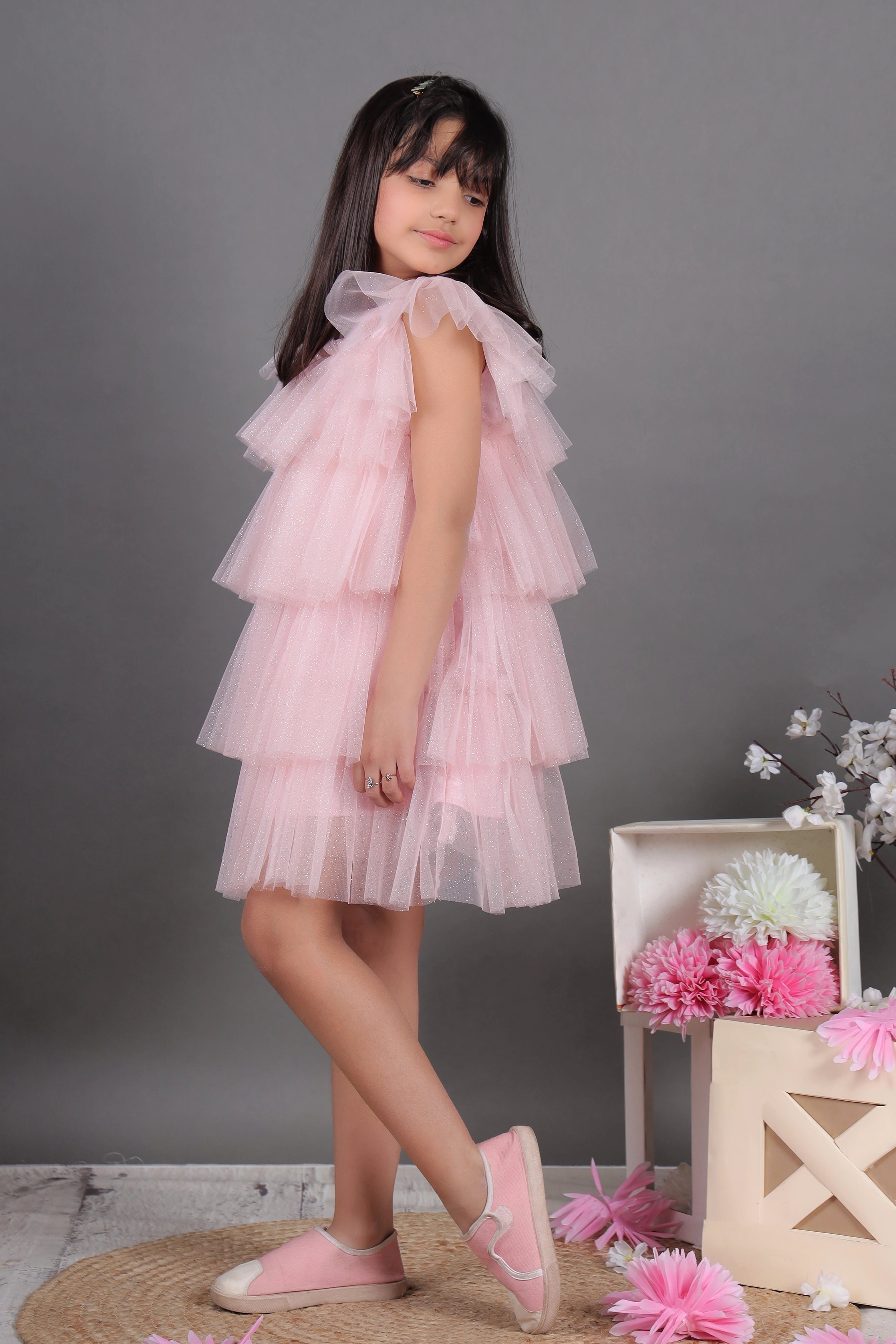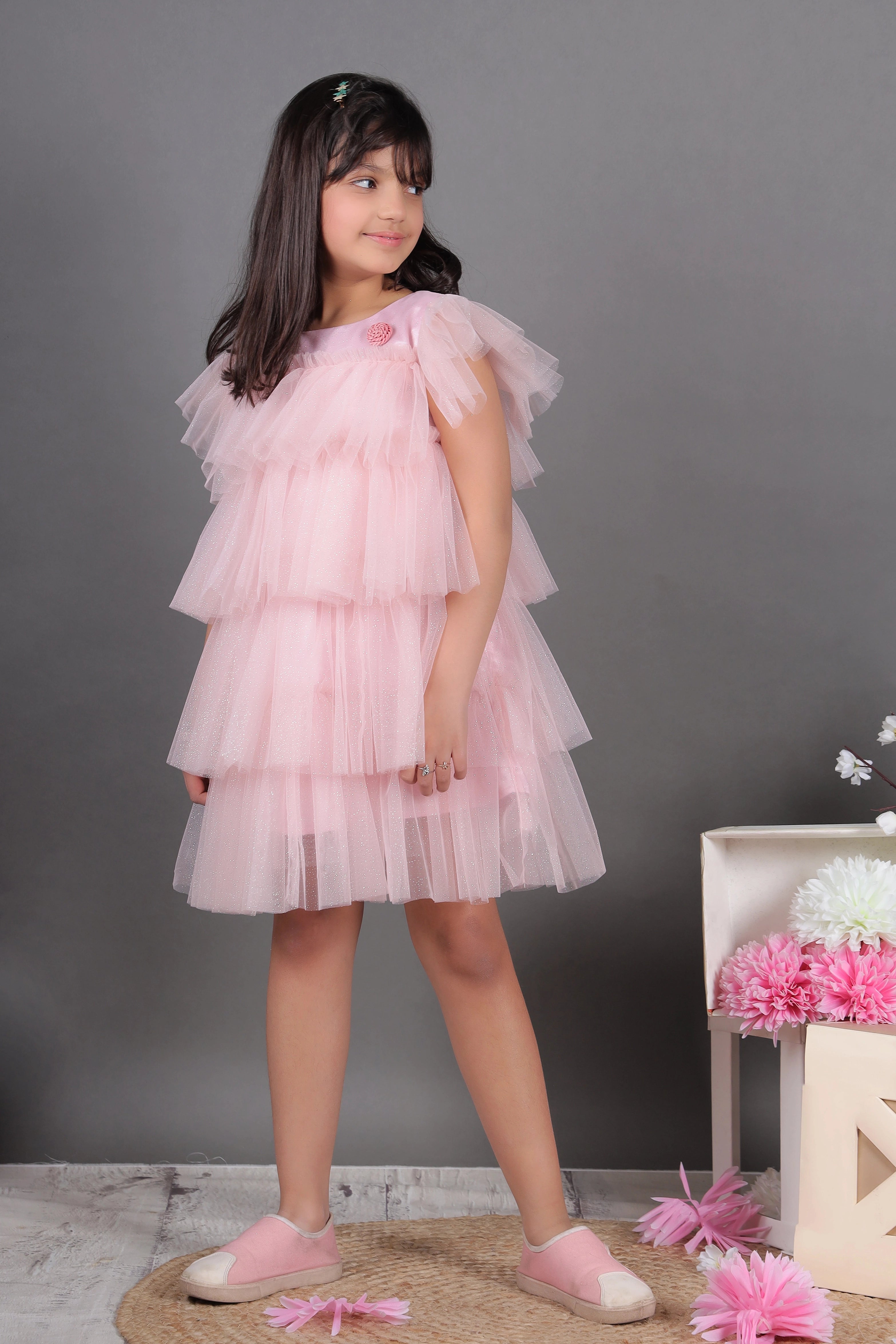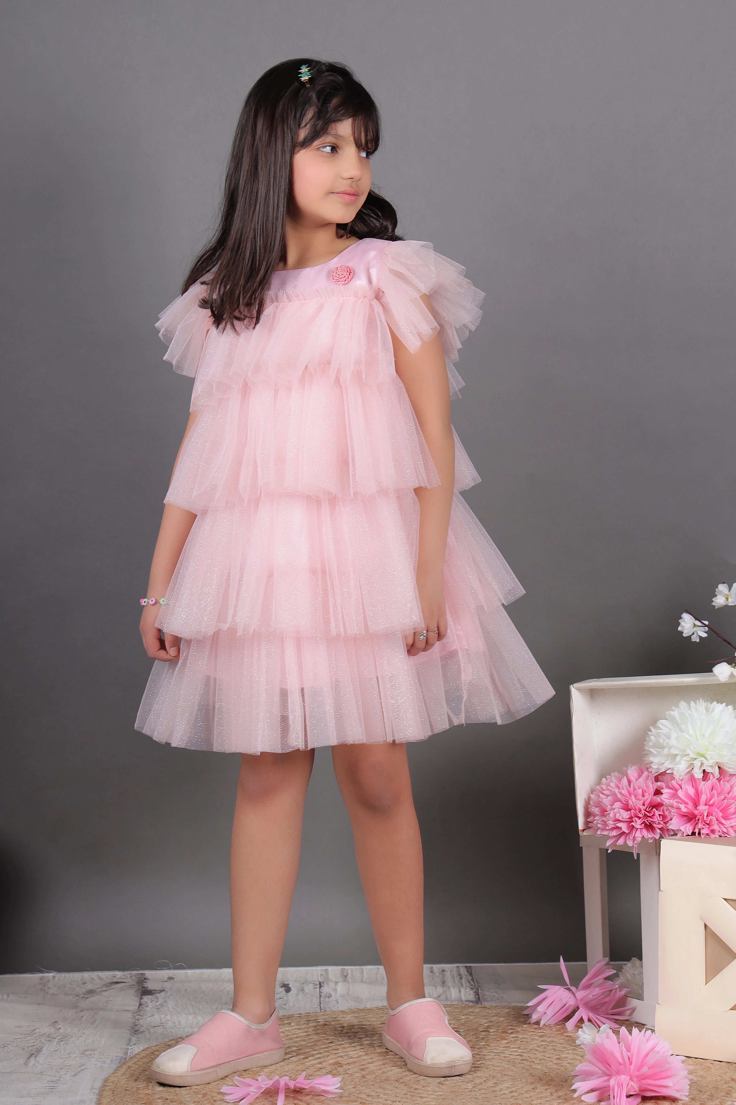 - Be the ultimate diva in our Glimmering Dusty layered Dress!