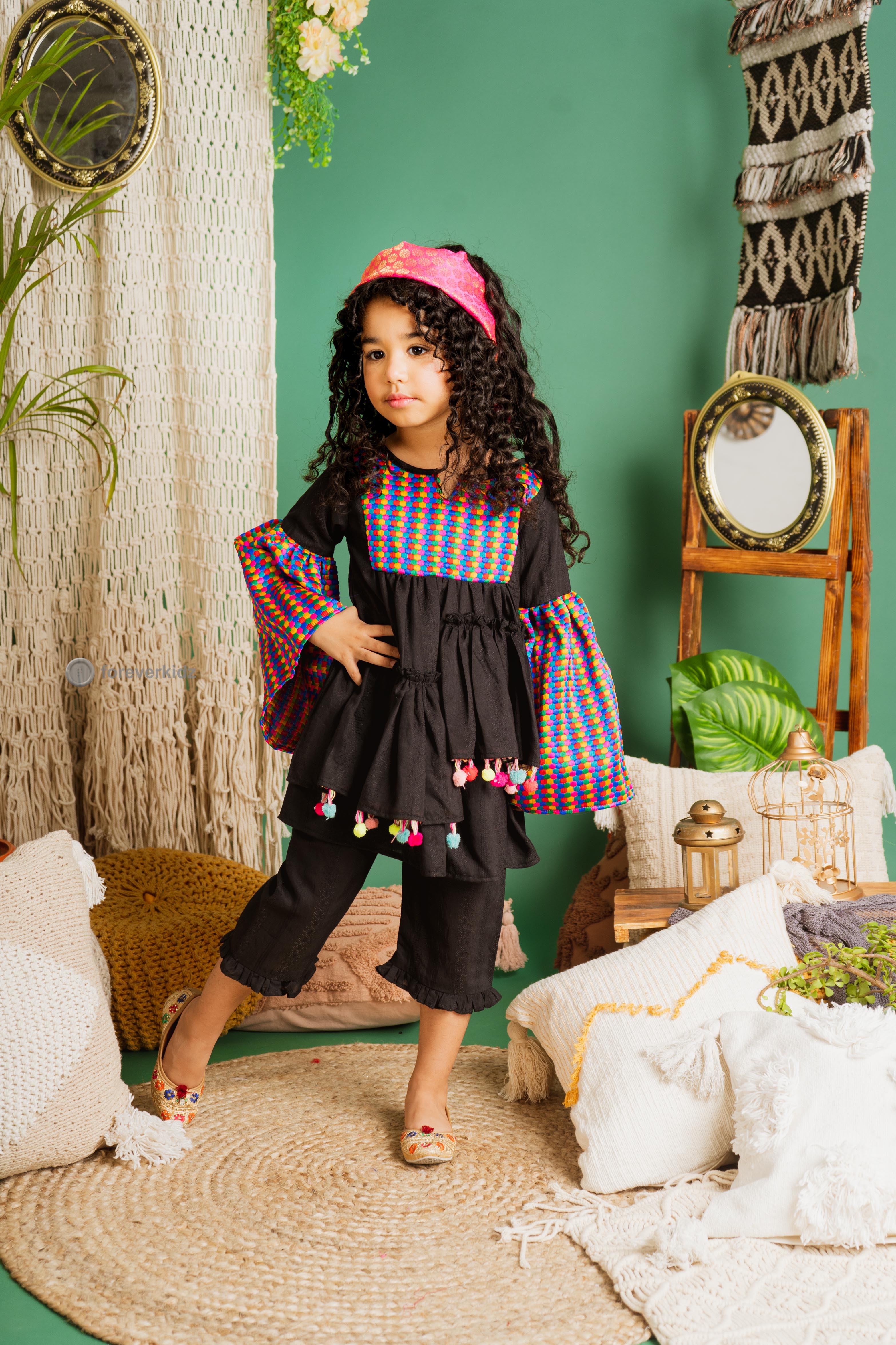 - This gorgeous Hippie flared kurta set is perfect for little divas to look absolutely stunning on their festival.