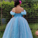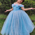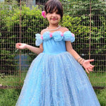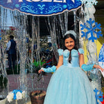 - This sparkle Icey blue birthday gown takes the little girl back to frozen theme and makes her soak herself in her dreamland.