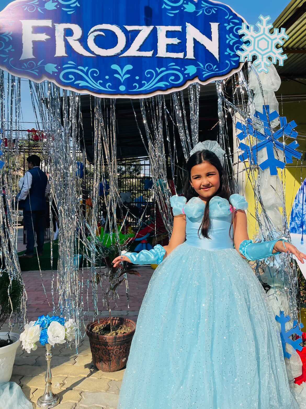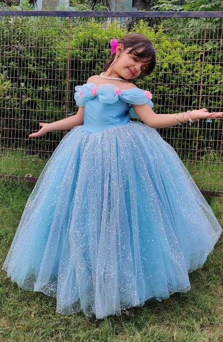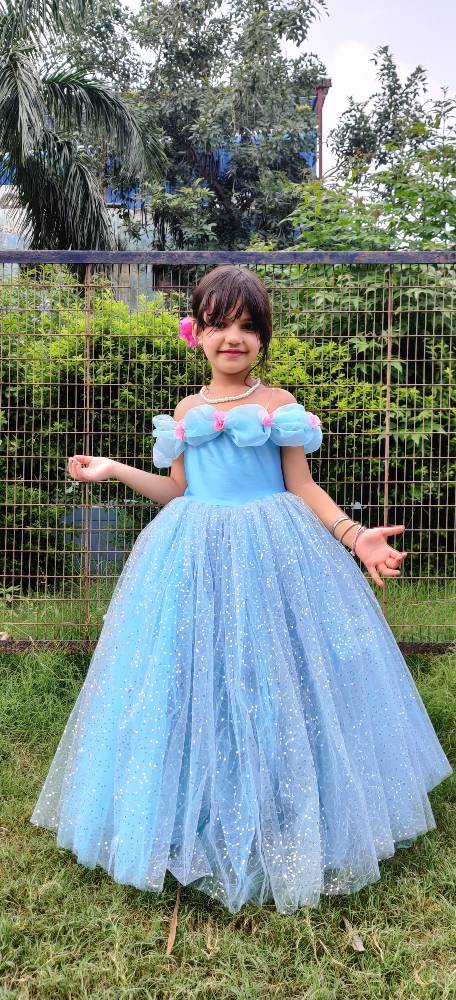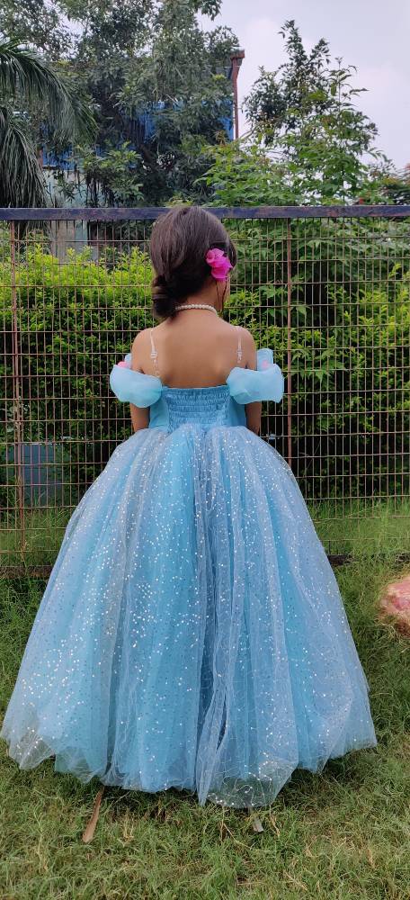 - This sparkle Icey blue birthday gown takes the little girl back to frozen theme and makes her soak herself in her dreamland.