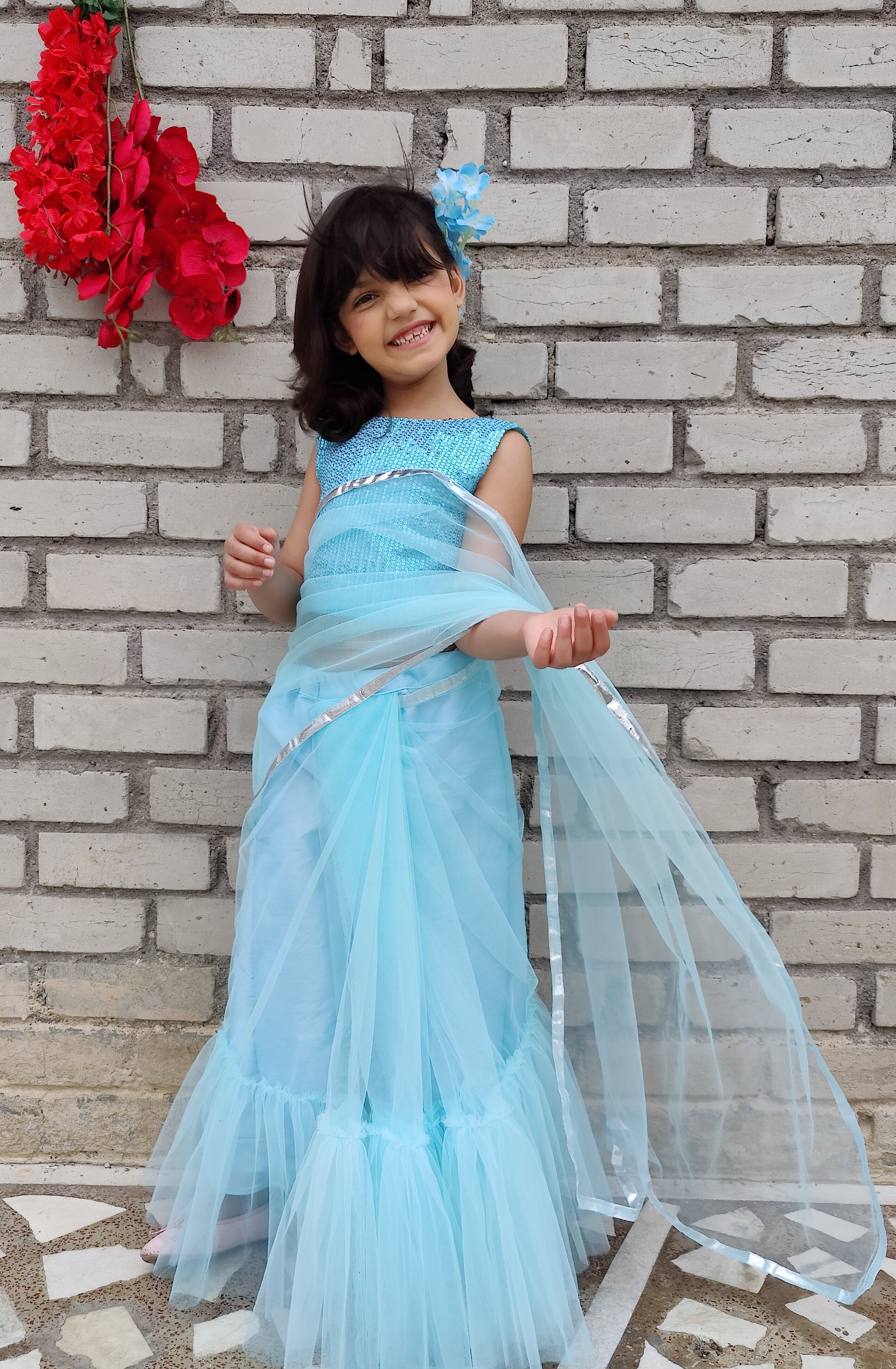 • Update your little girl's wardrobe with this latest most adorable ready made saree.