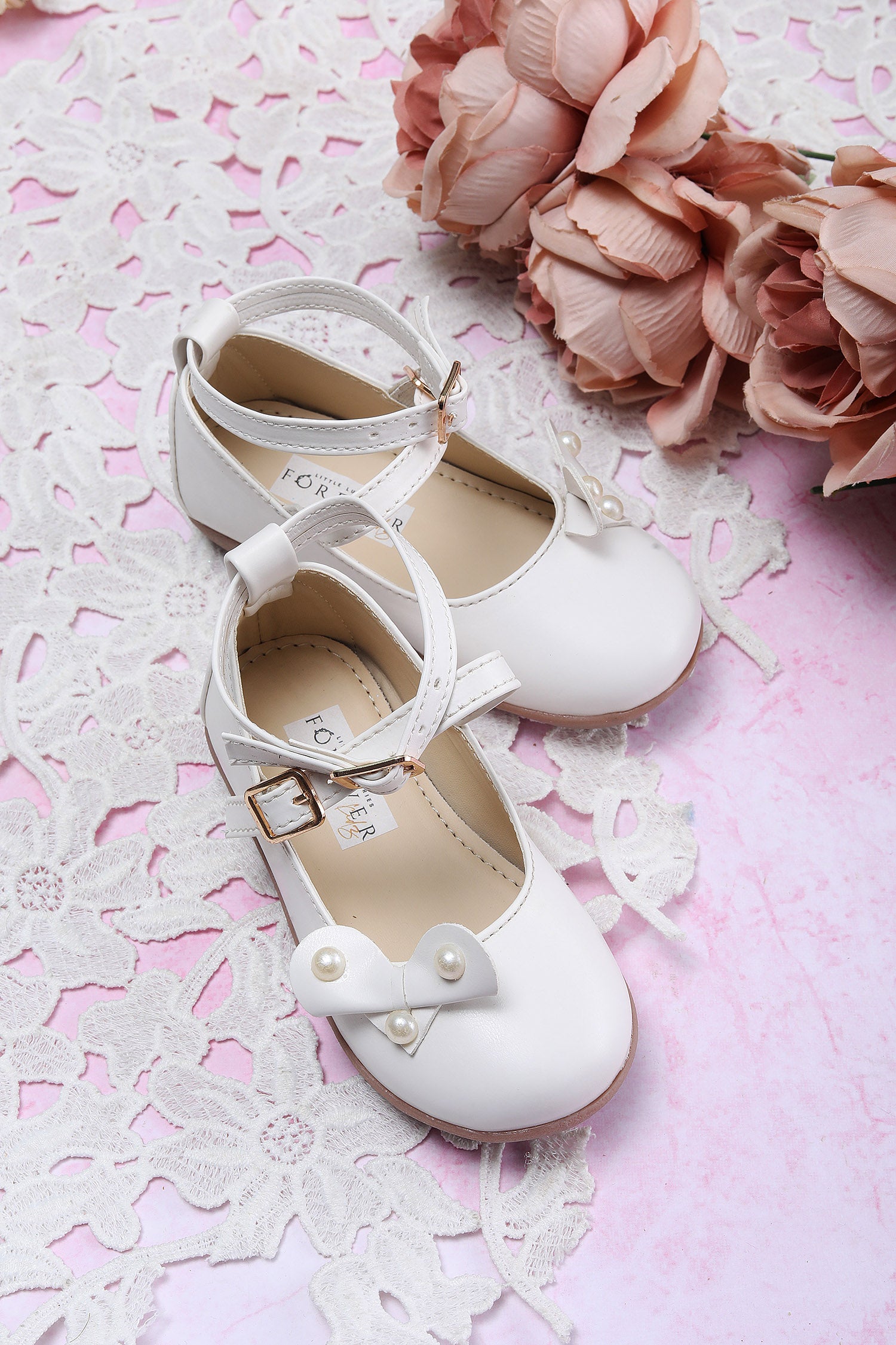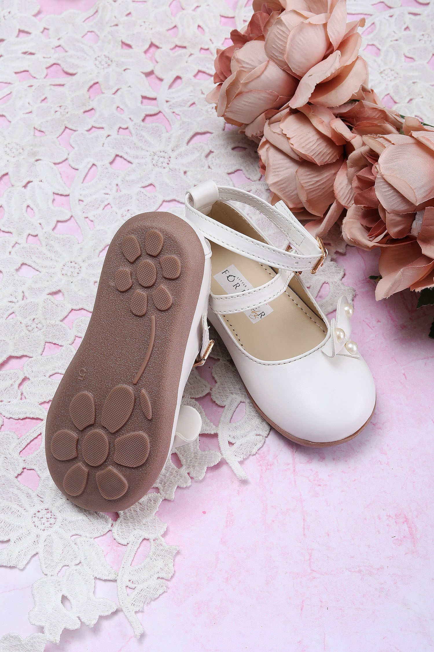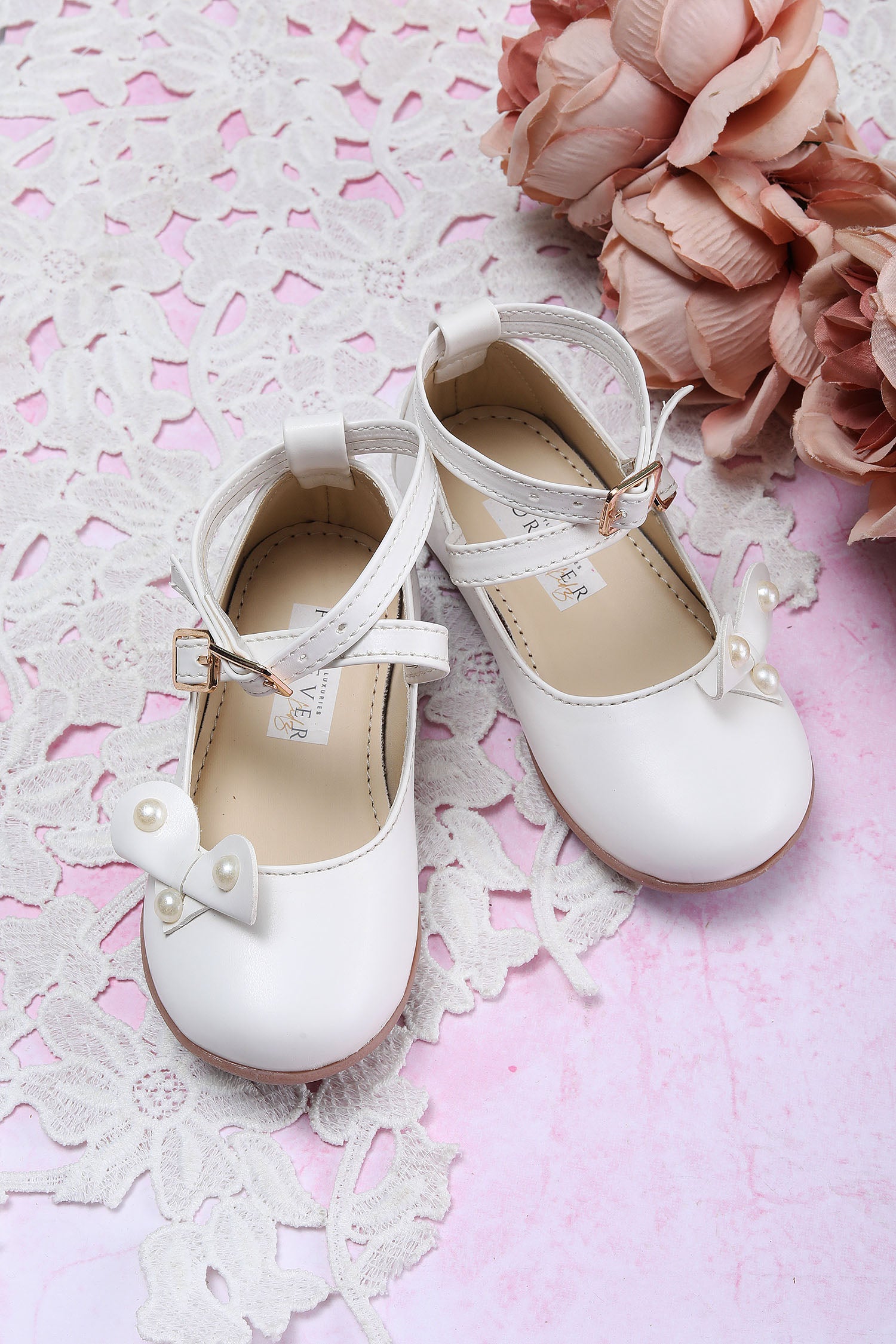 - Step into sophistication with our Ivory Pearl Strap Ballerina shoes!