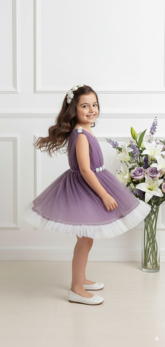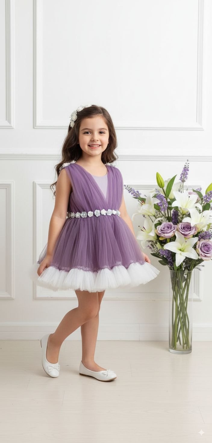 - Introduce timeless elegance to your child's wardrobe with the Lilac Bloom Dream Party Dress. This refined piece features a captivating lilac palette that exudes grace and sophistication for formal occasions.