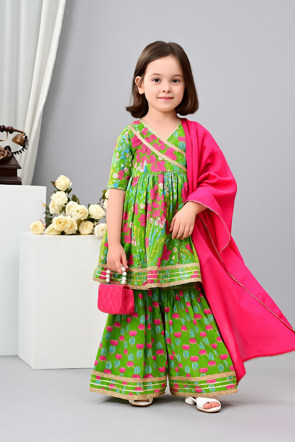 - Amp up your little girl's wardrobe with our lime garden sharara set!