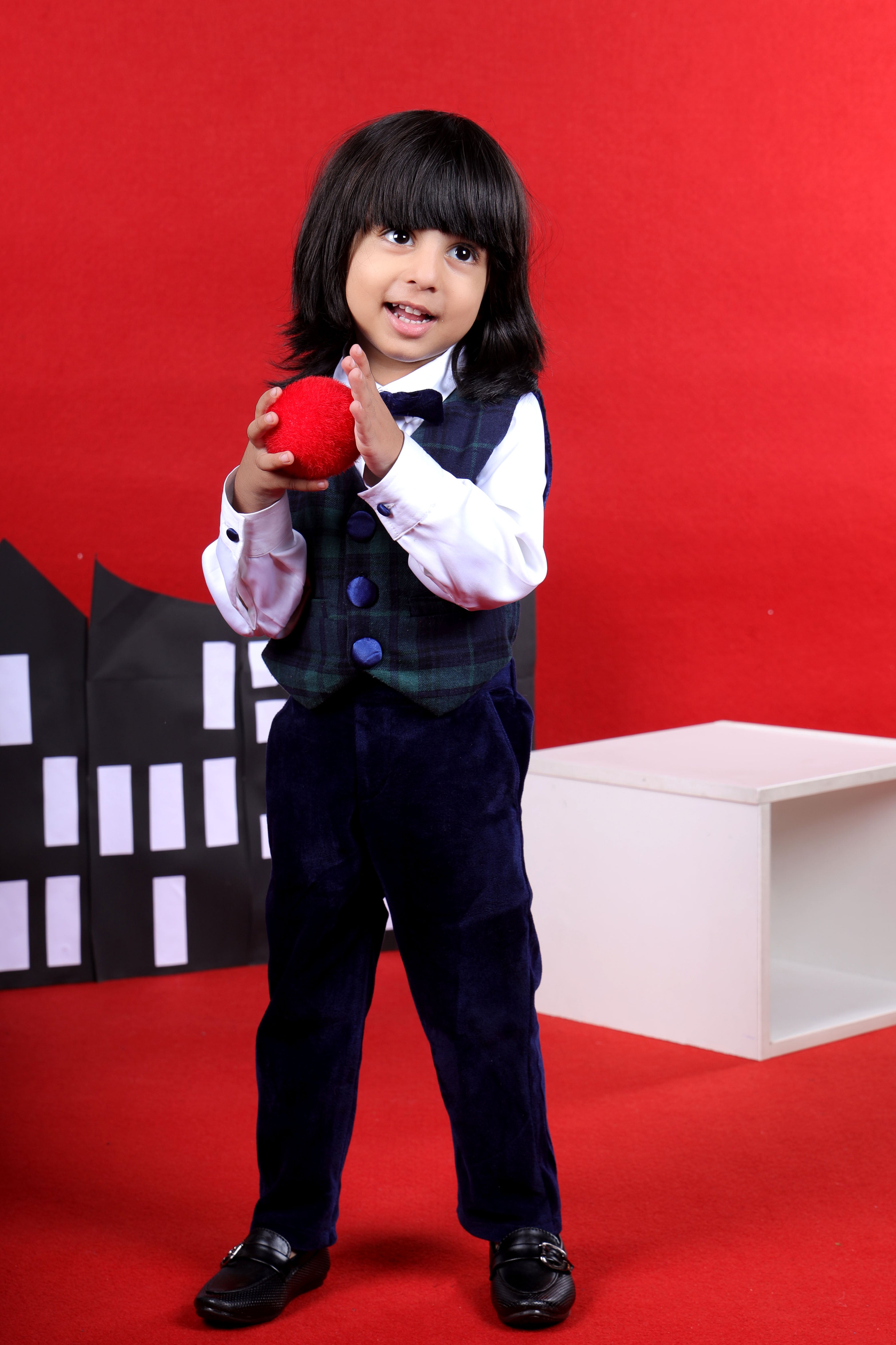 - Full suit set with a waist coat and a bow tie absolutely stunning for little stars to grab the attention.