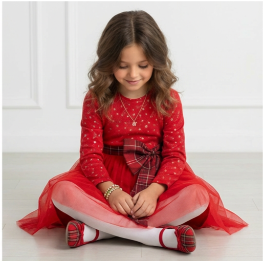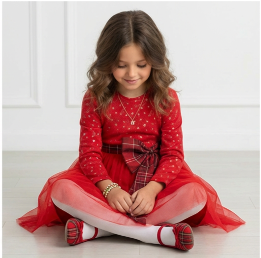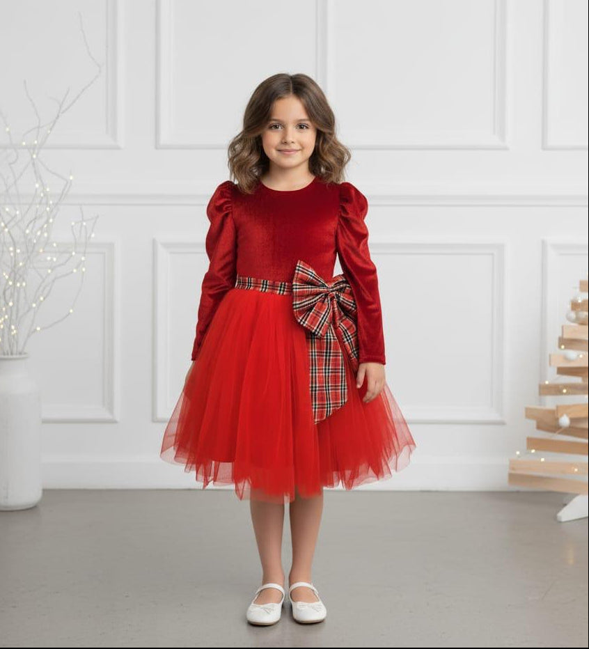 - Little Miss Cherry Velvet Frock Elevate your child's wardrobe with this exquisite velvet frock in a rich cherry hue.