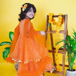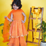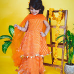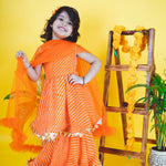 - Gorgeous Orange Leheriya sharara set for little divas to look absolutely stunning on their festival.