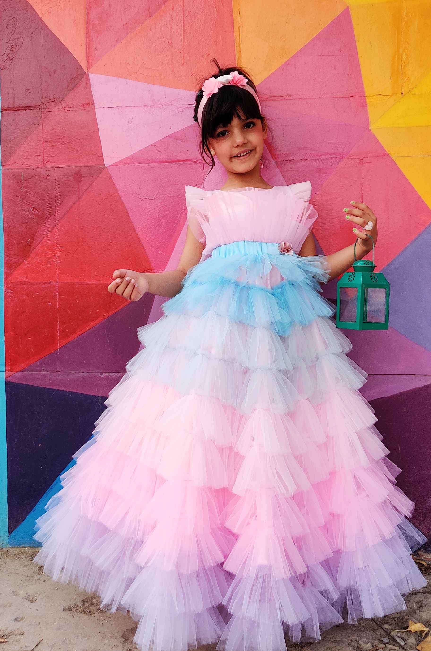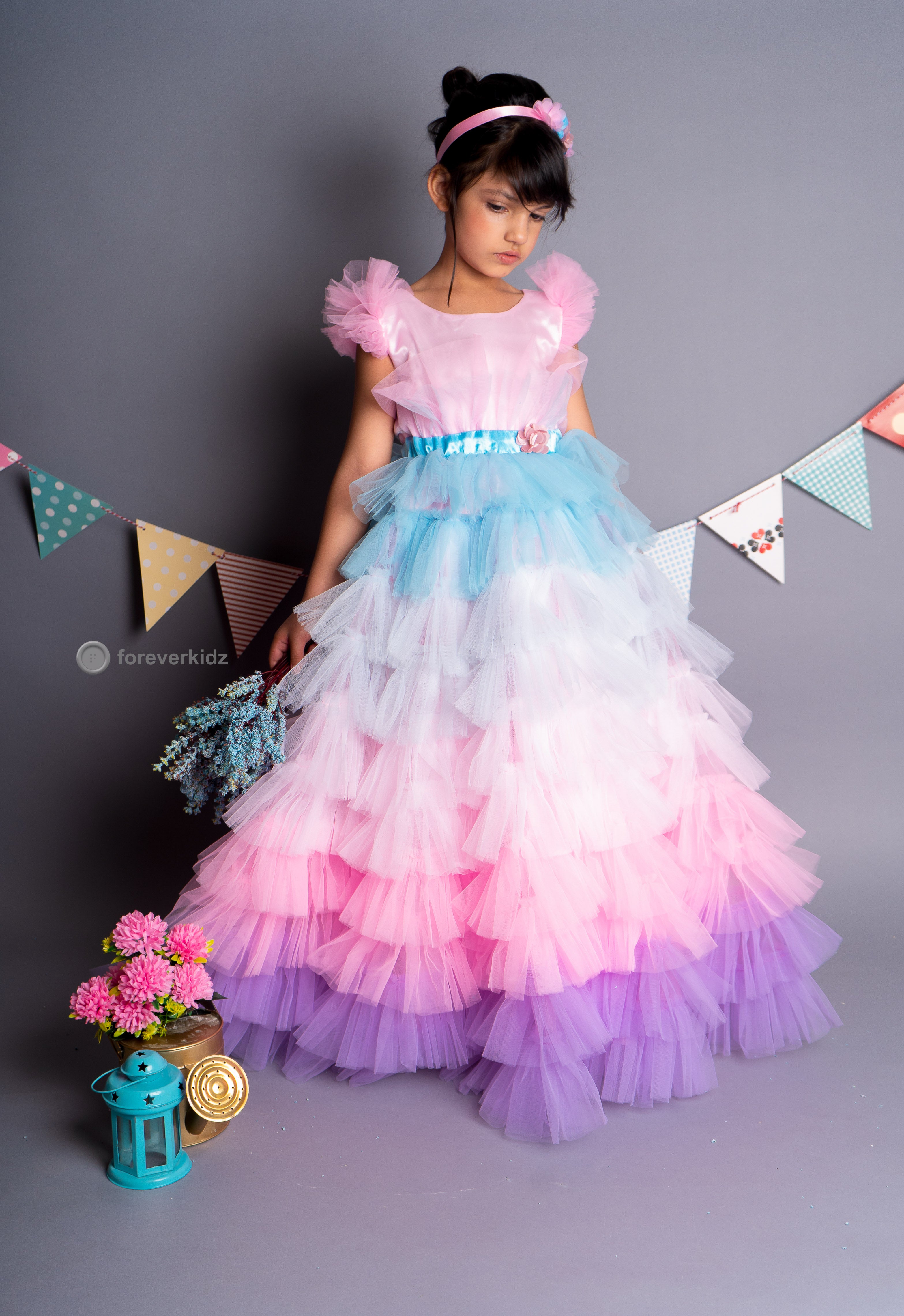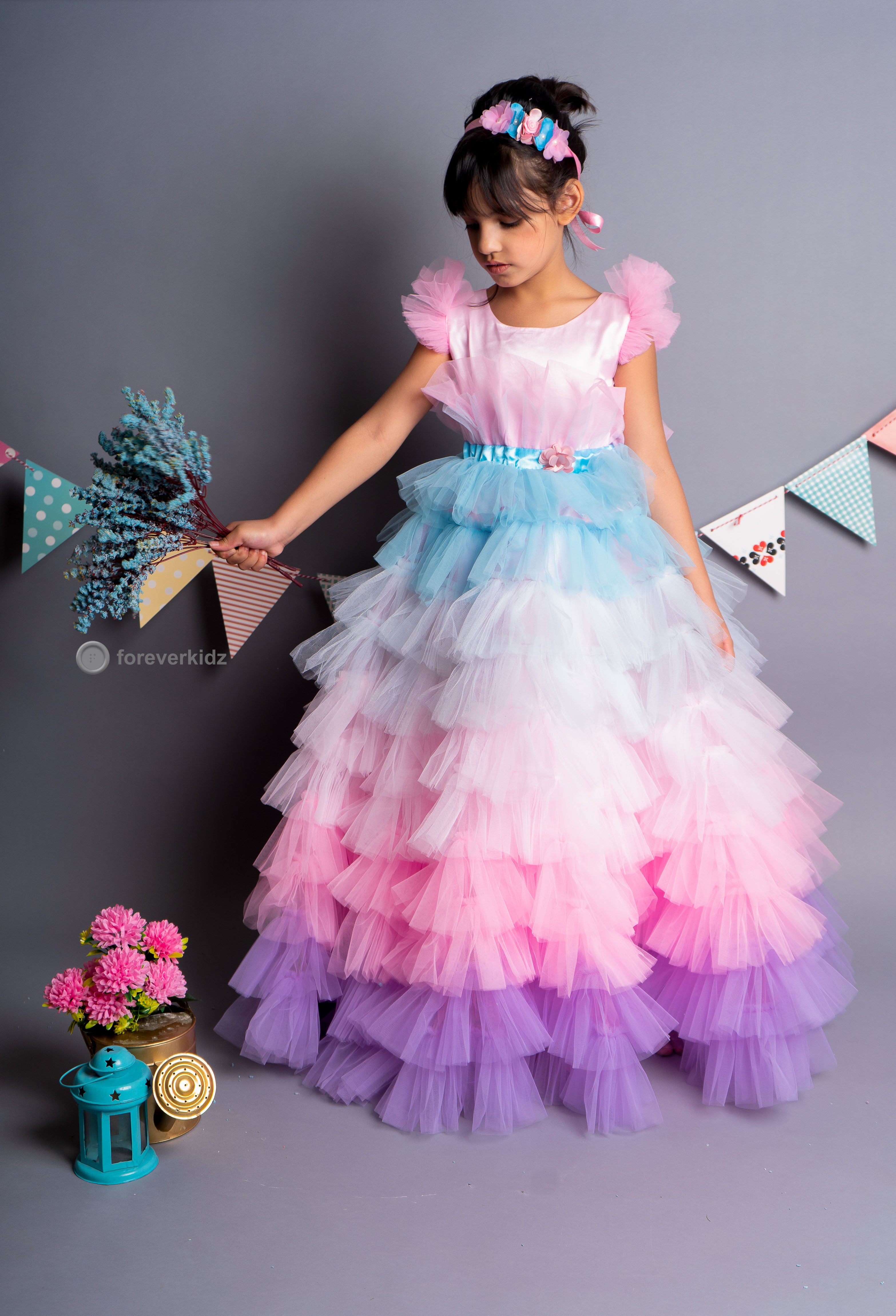 - Wow cascading layers on pastels, party dress for kids has made a new definition, offering huge comfort.