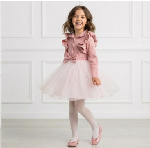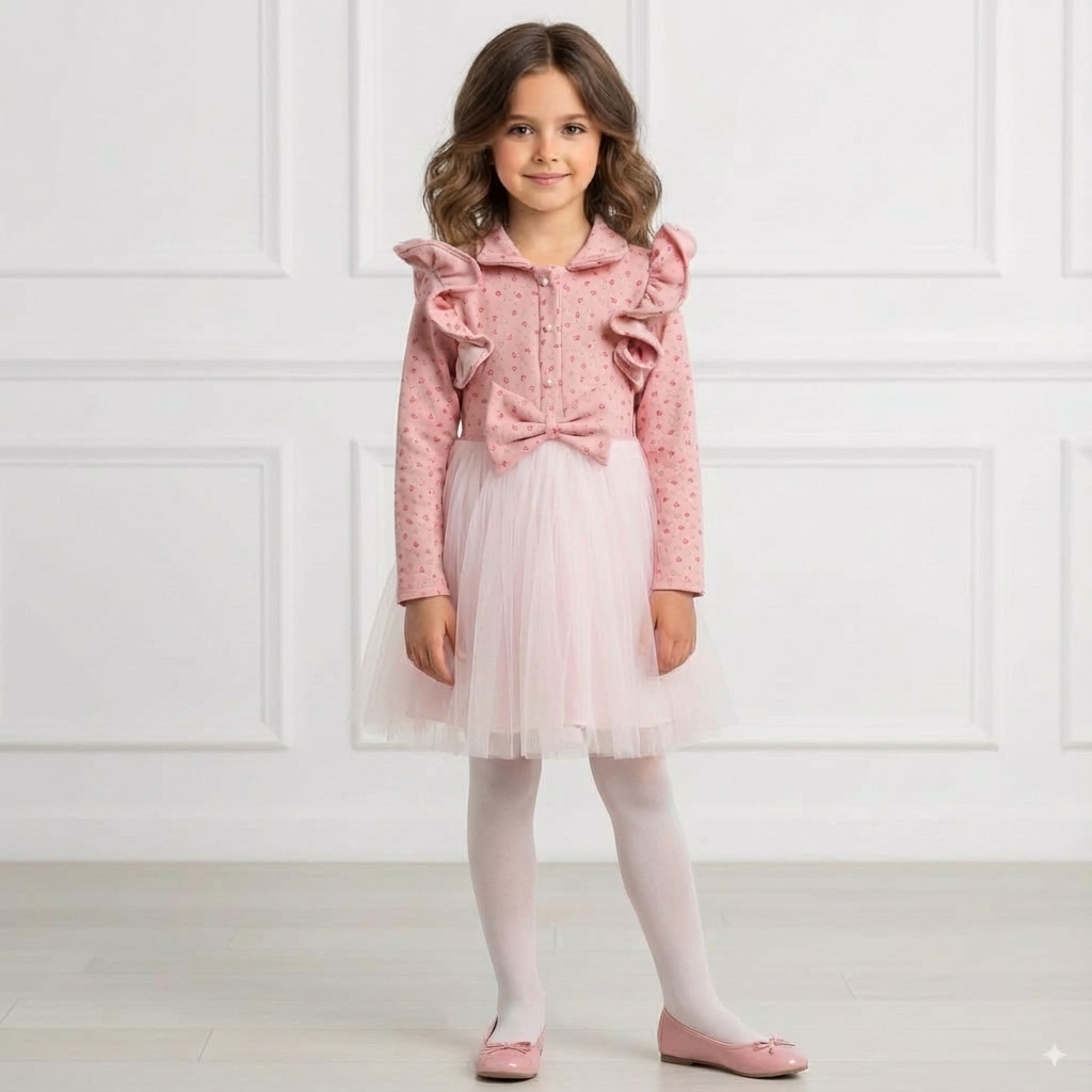 This light, airy frock features layers of soft tulle that float gracefully with every step, perfect for playdates or special occasions.