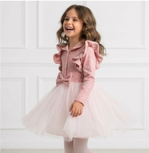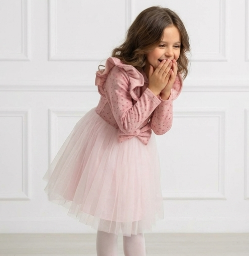Dress your little one in the Pink Mist Dreams Tulle Frock and watch her twirl with joy.