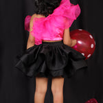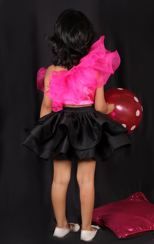 - The pink frilly ruffle top gives her a super stylish look and she is ready to rock her special events.