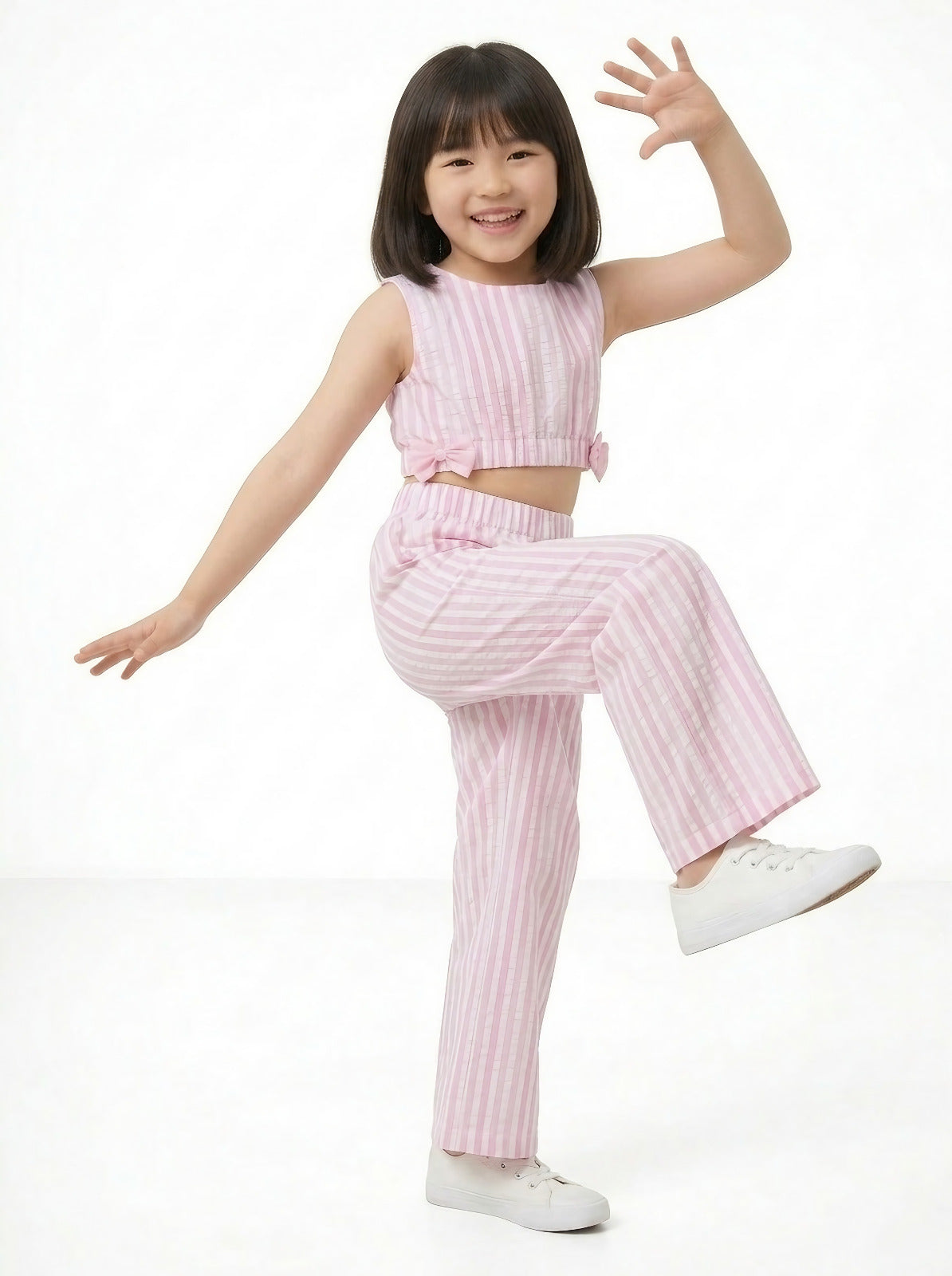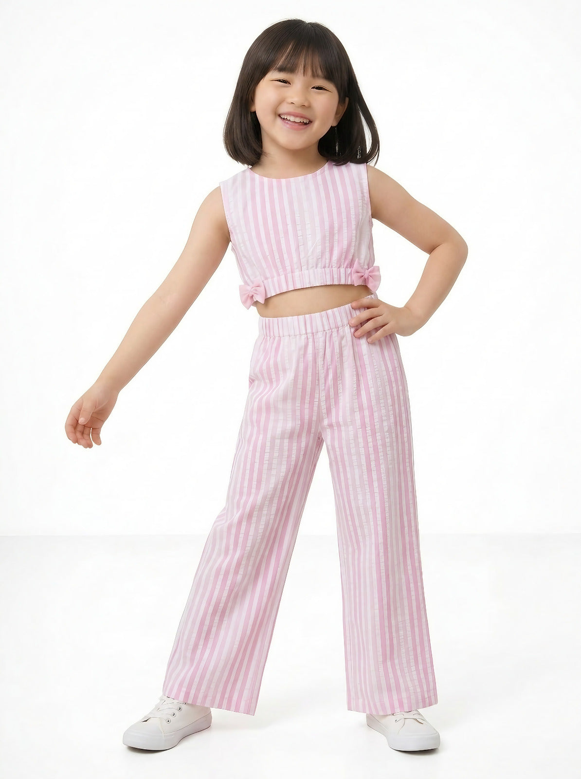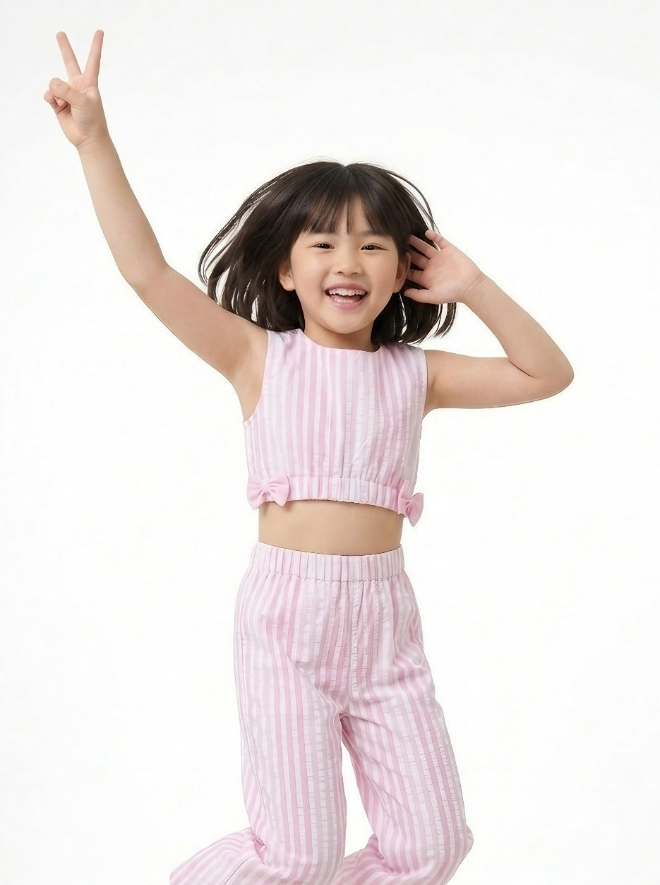Elevate your little one's wardrobe with this charming Pink Seer Sucker Coord Set. The lightweight seer sucker fabric offers breathable comfort perfect for warm days, while the coordinated two-piece design makes dressing effortless. The sleeveless cut and short length keep things cool and playful, ideal for casual outings, playdates, or summer celebrations. The regular fit ensures comfortable movement for active kids. A versatile essential that transitions seamlessly from day to evening wear.