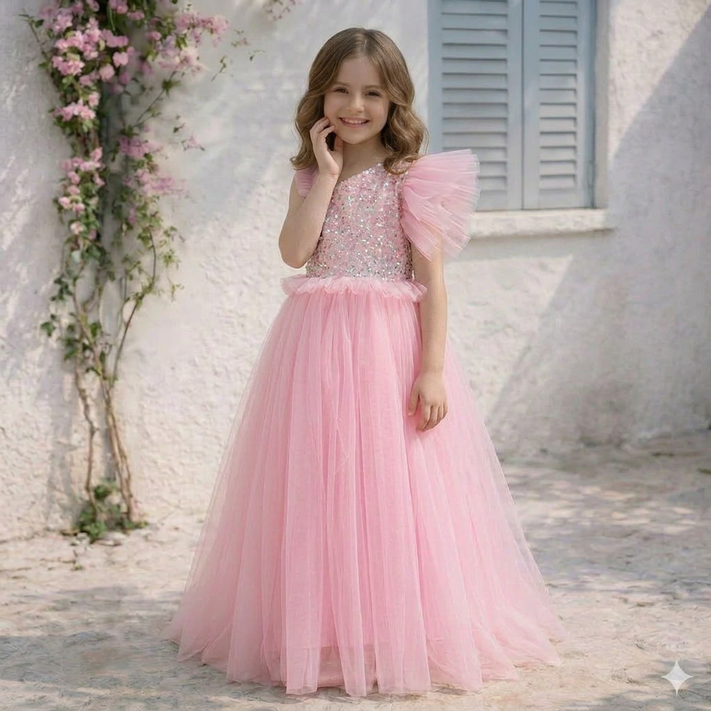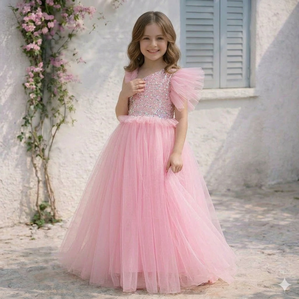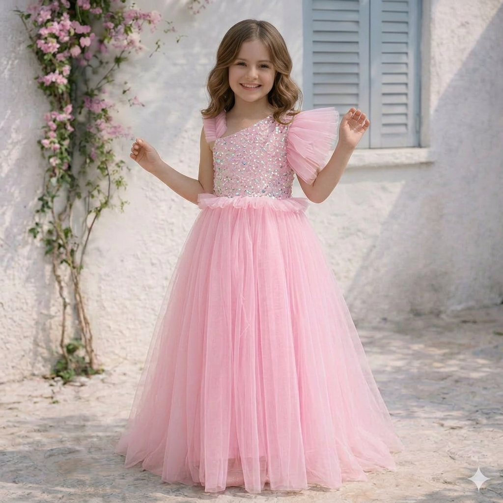 - Twirl in enchantment with this Pink Stardust Gown, a dreamy creation perfect for special occasions.