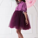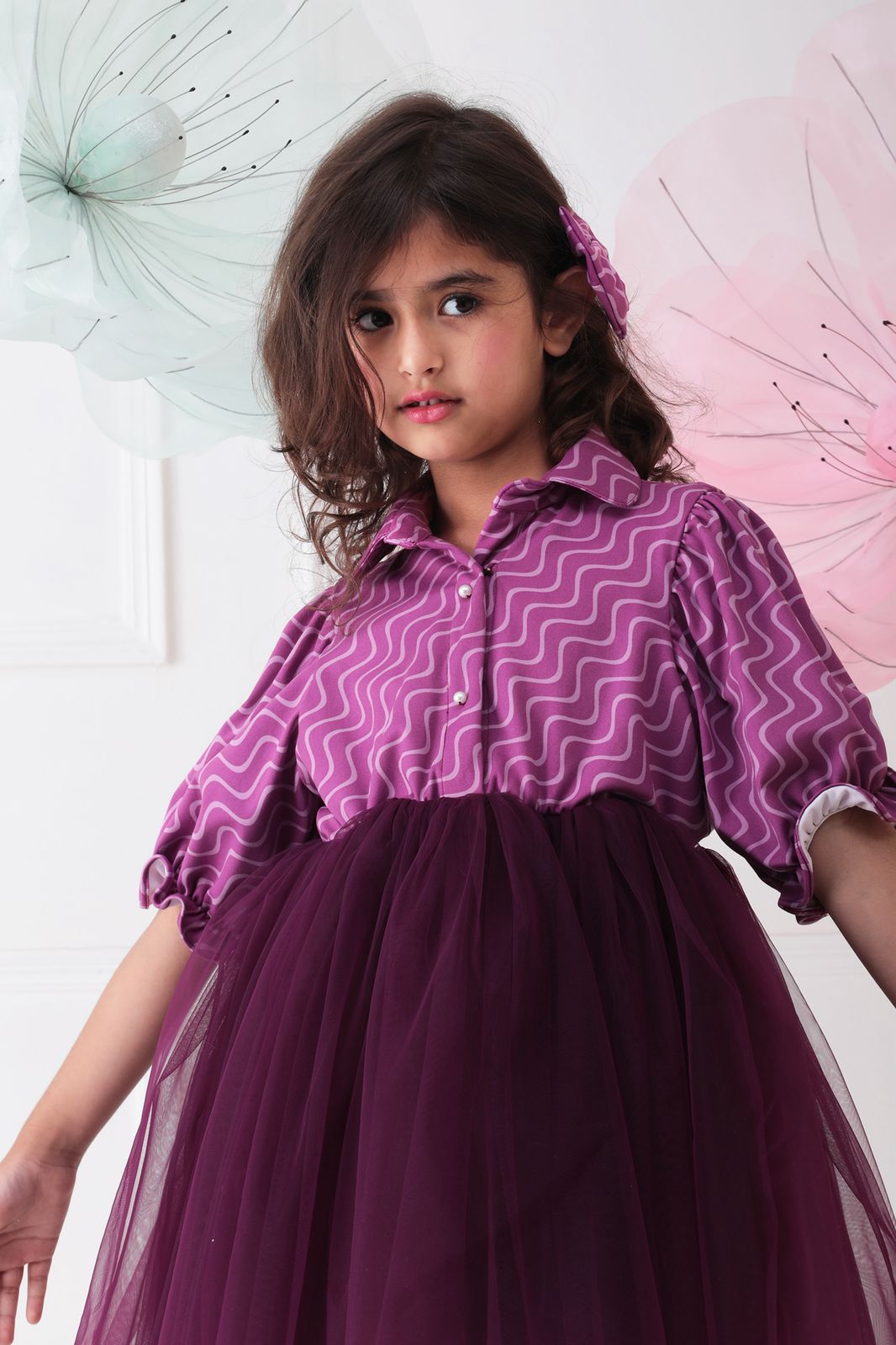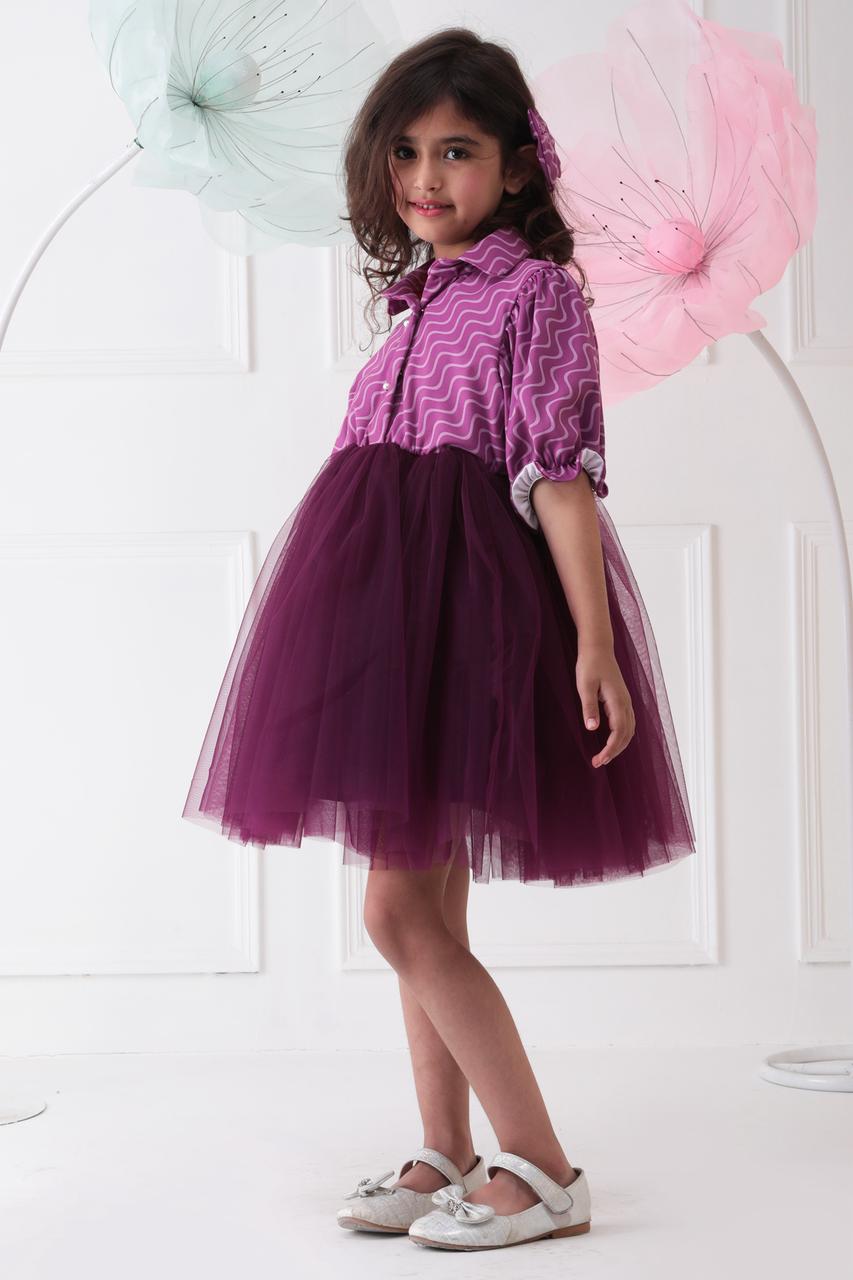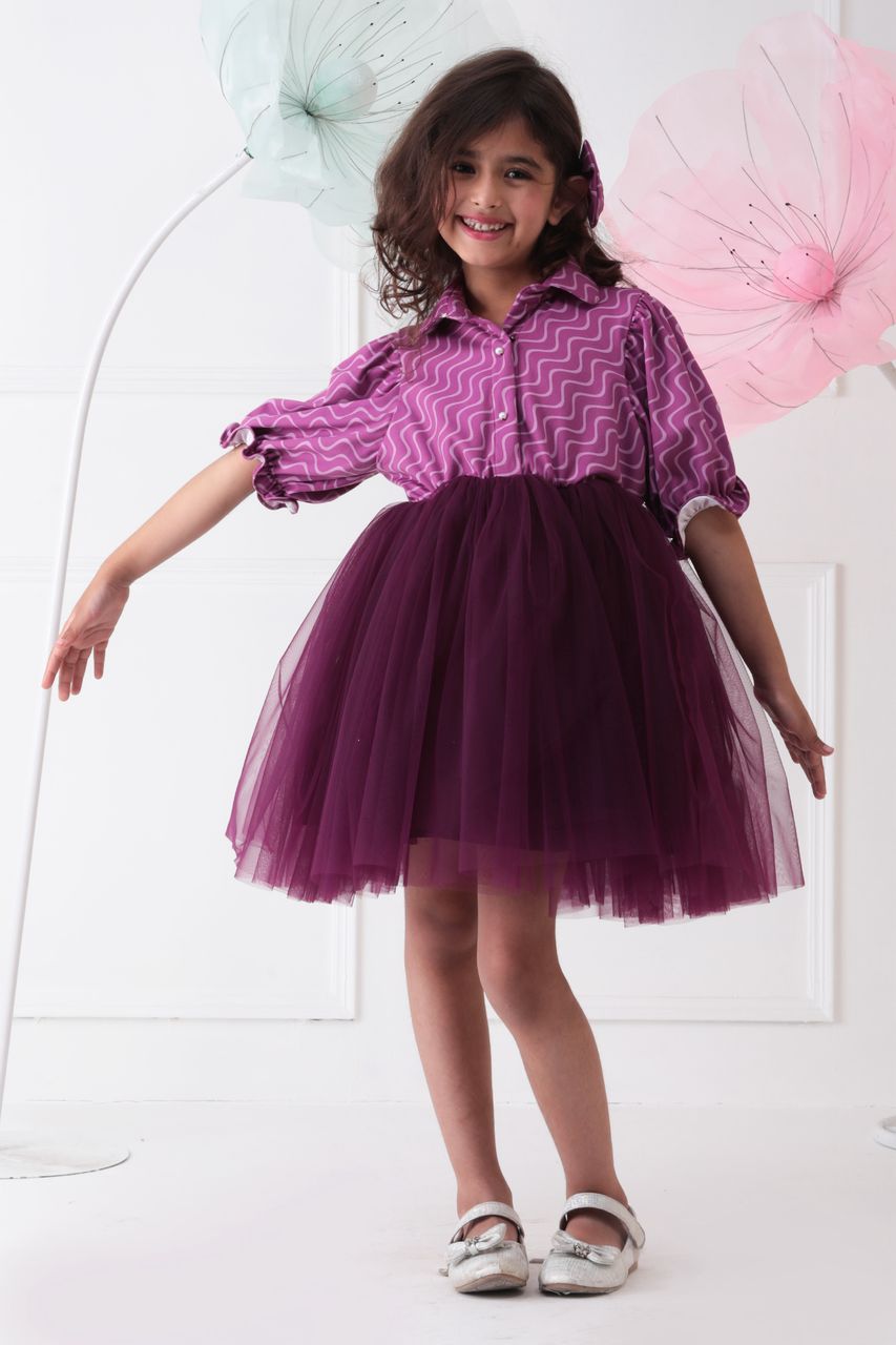 - Add a pop of fun to your wardrobe with the Plum Swirls Joy Frock.