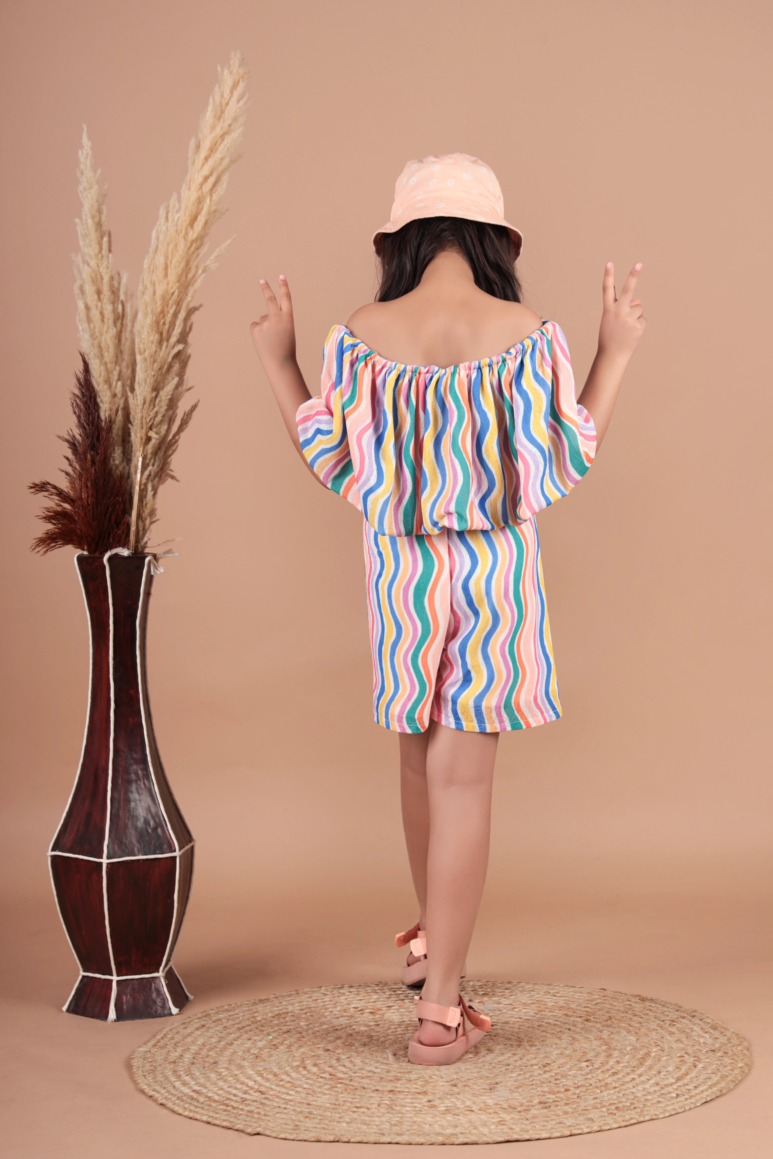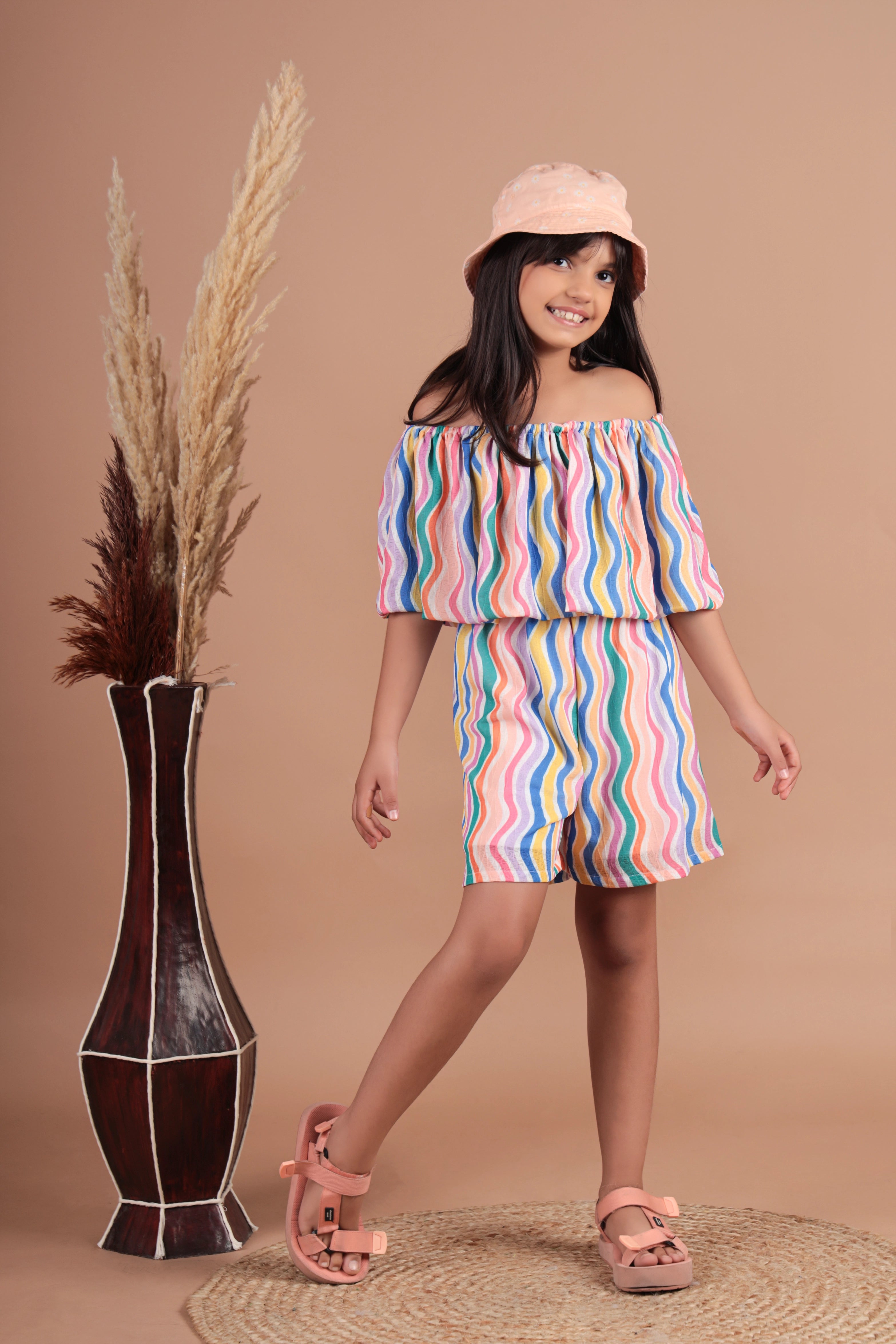 - She is sure to feel like a fashionista in this stripes print playsuit paired with modern touch