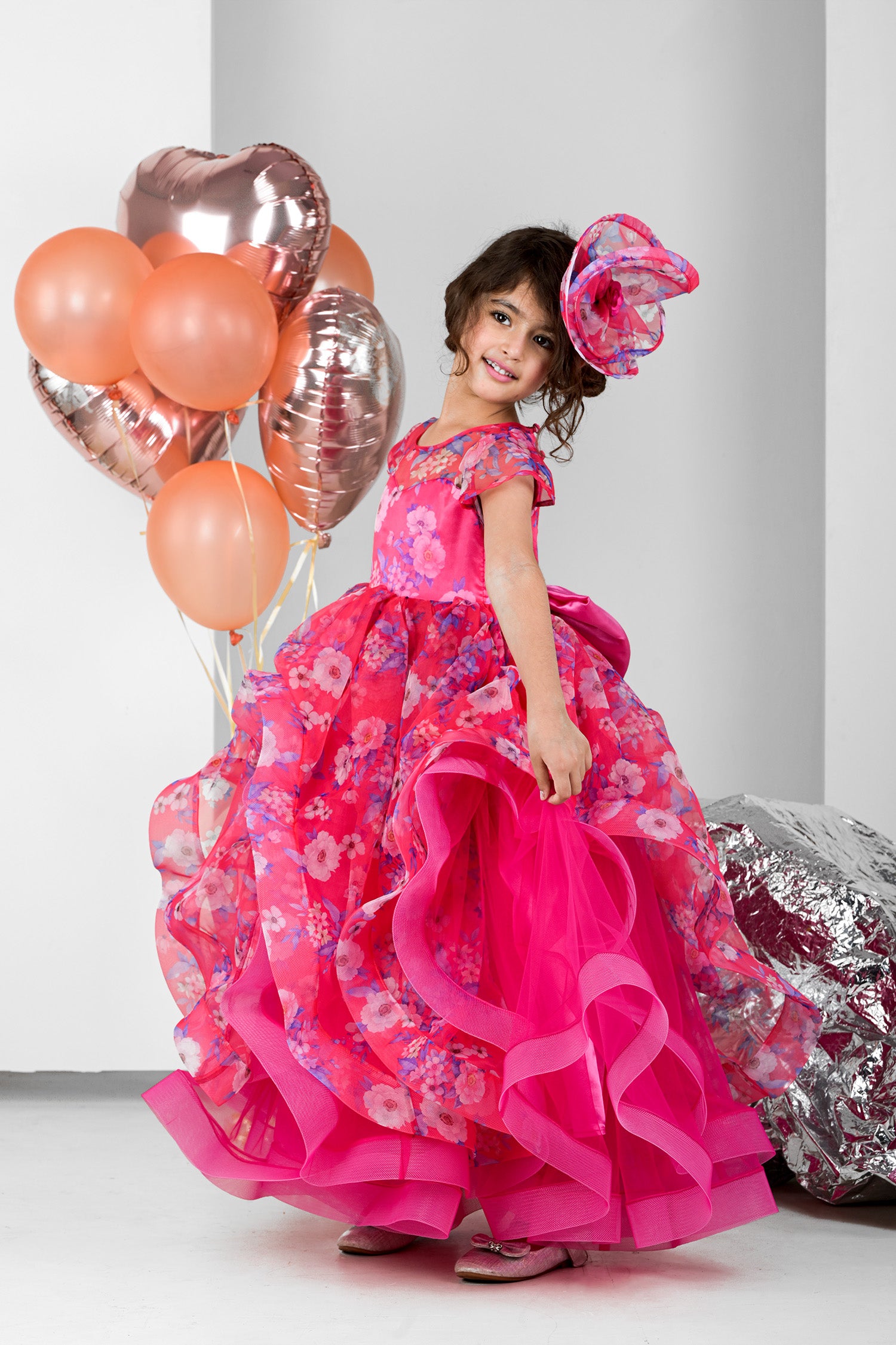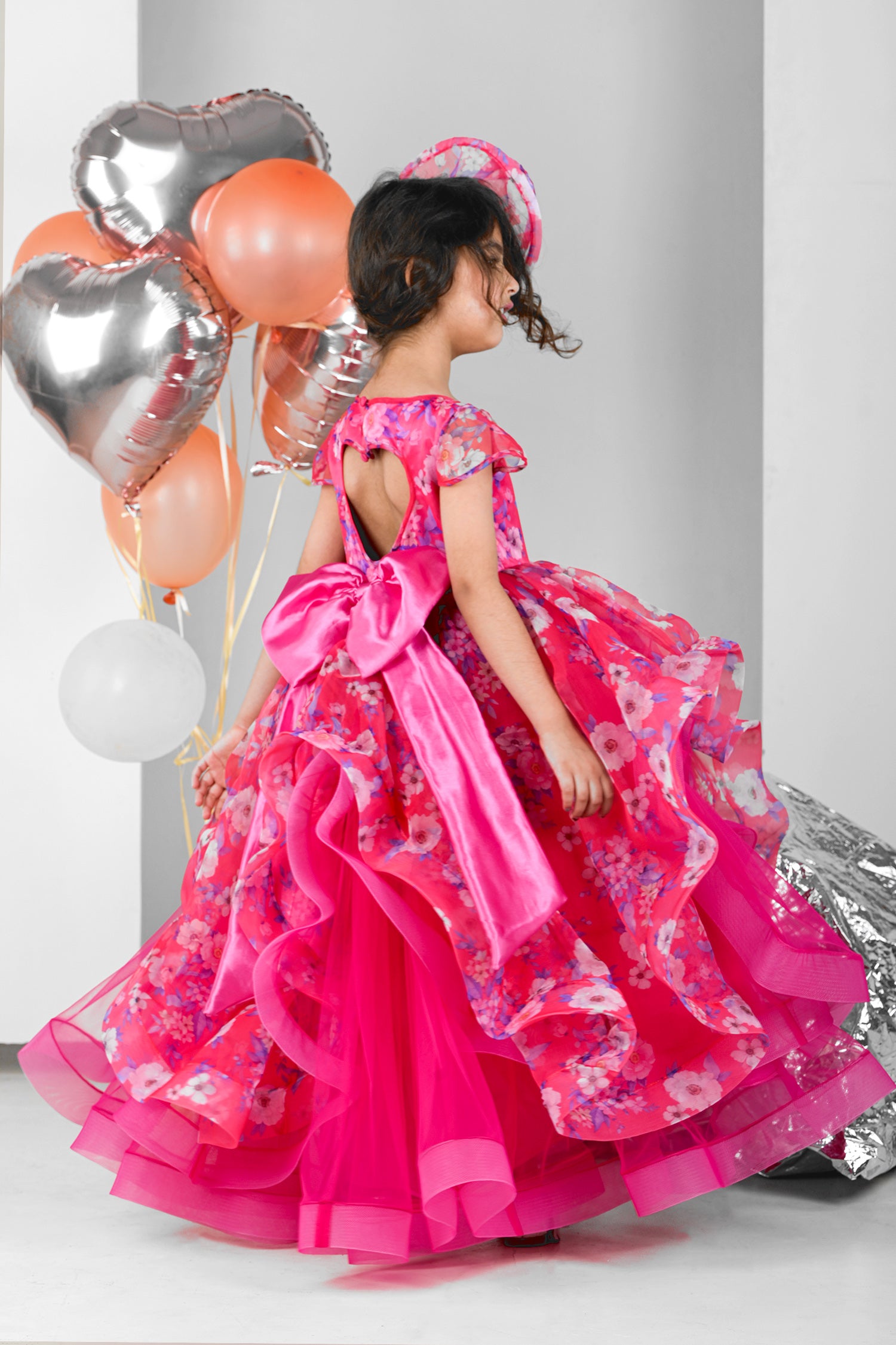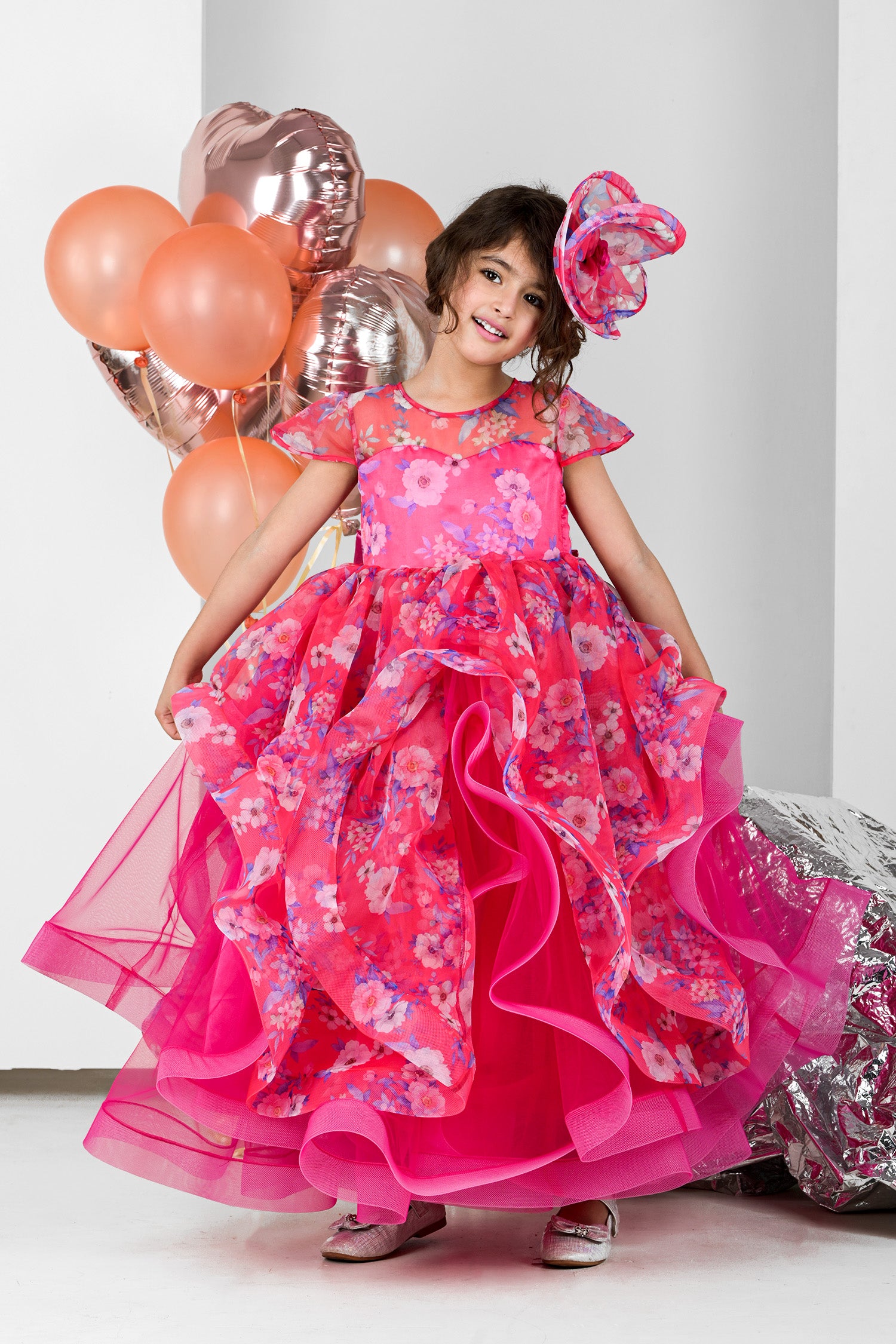 - This gorgeous gown features glorious cascades of ruffles in this beautifully designed party dress and absolutely mesmerizing for the little diva for her party or special event.