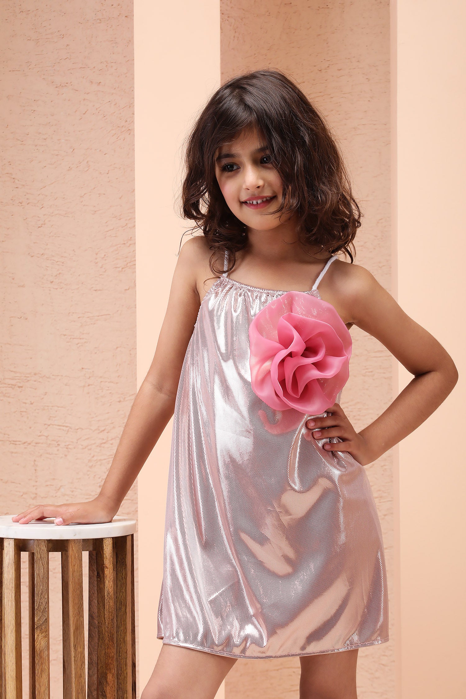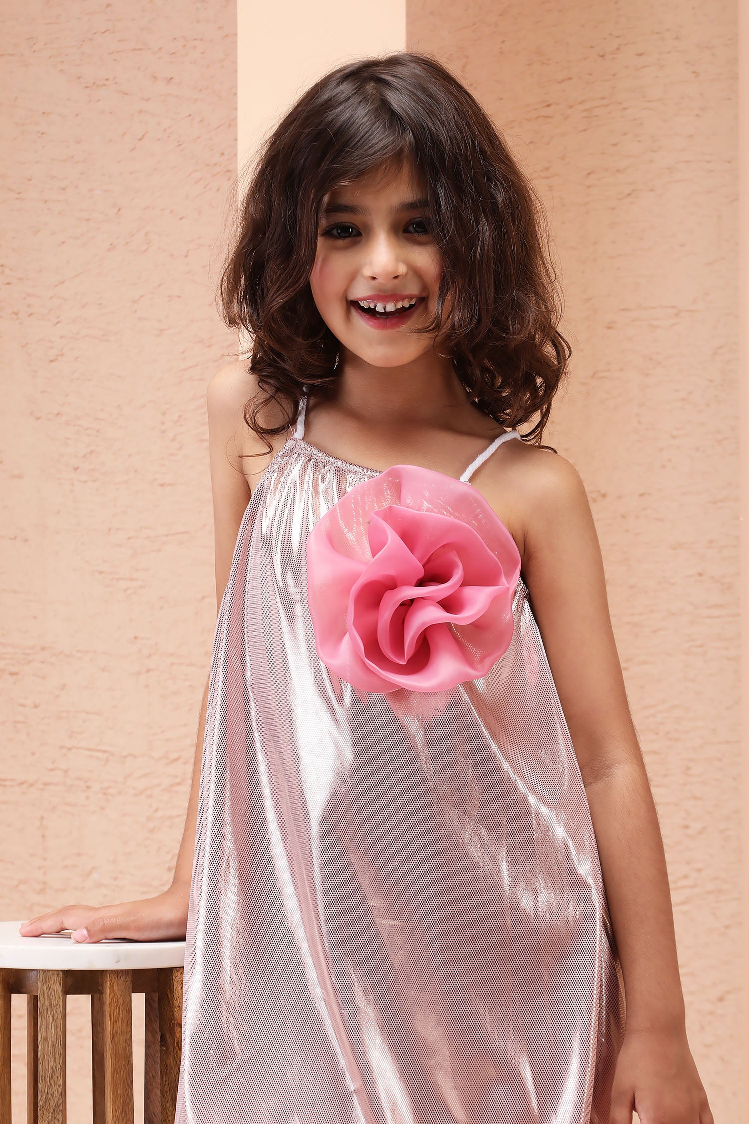 Be the talk of the playdate in this dusty pink Rose Glow Strappy Tunic Dress.