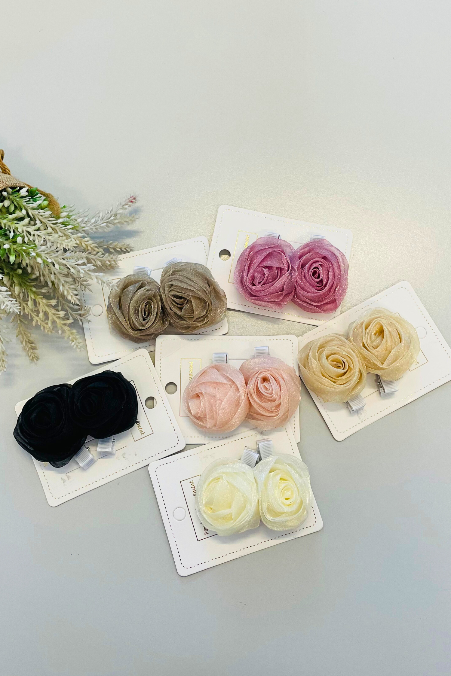 - Add a touch of whimsy to your hair with our Rosebud Organza Clip Set