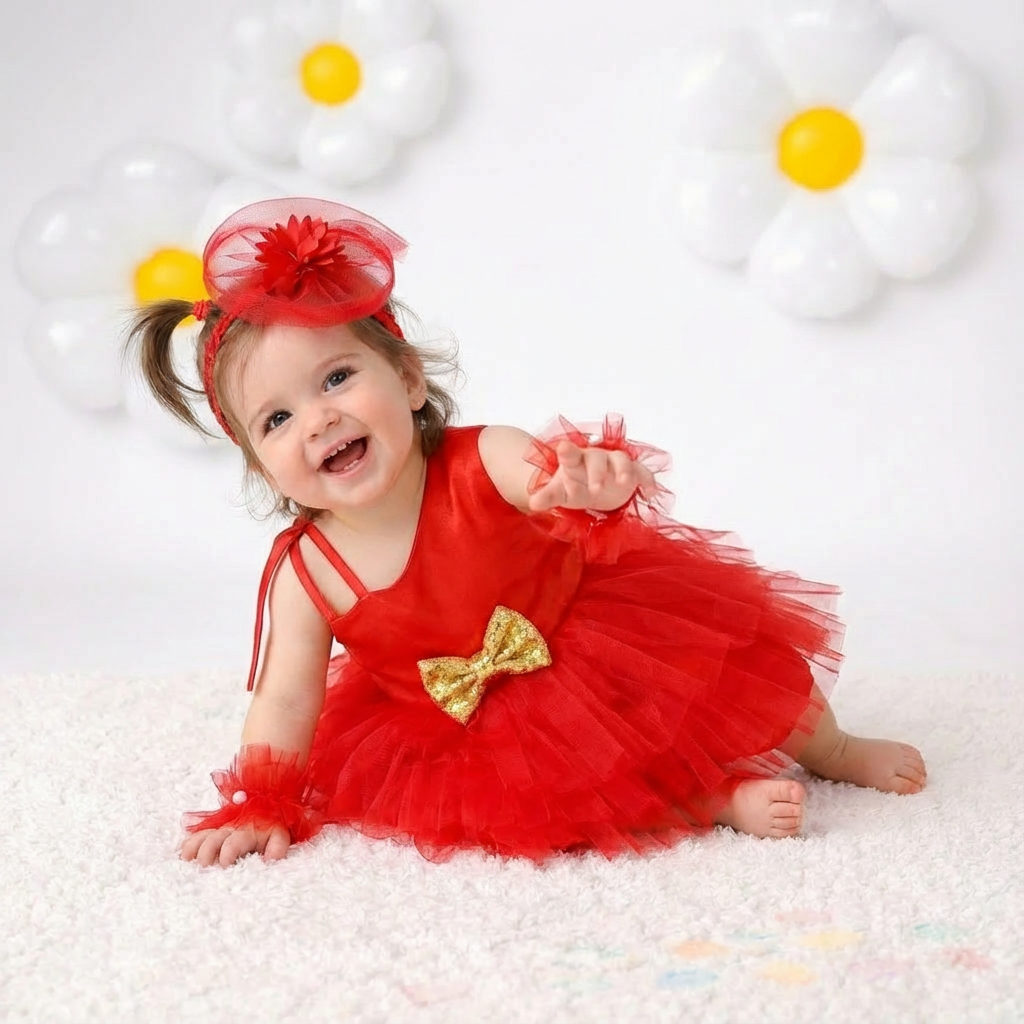 - Get your little angels ready to party with our ruby radiance frock set!