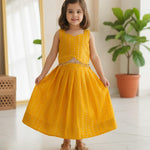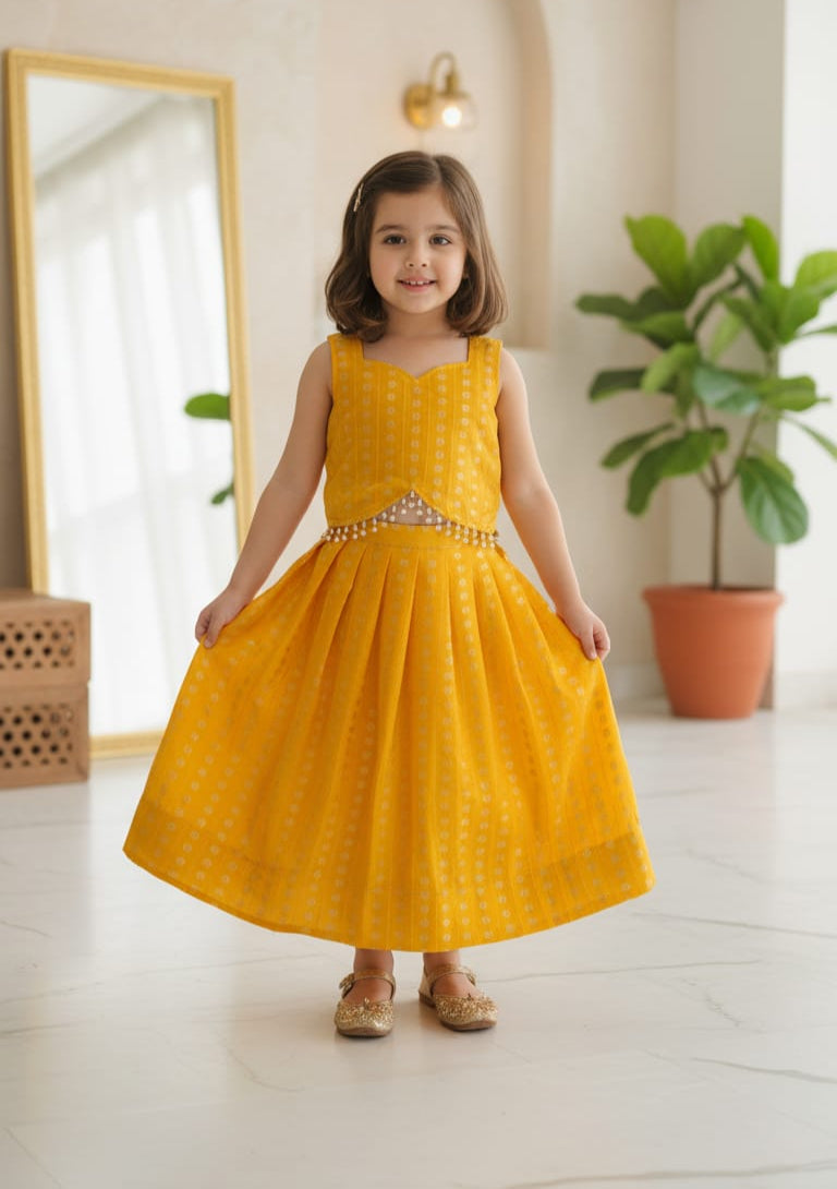 This playful ensemble brings a burst of sunshine with vibrant hues and graceful flow, perfect for twirling at weddings or festivities.