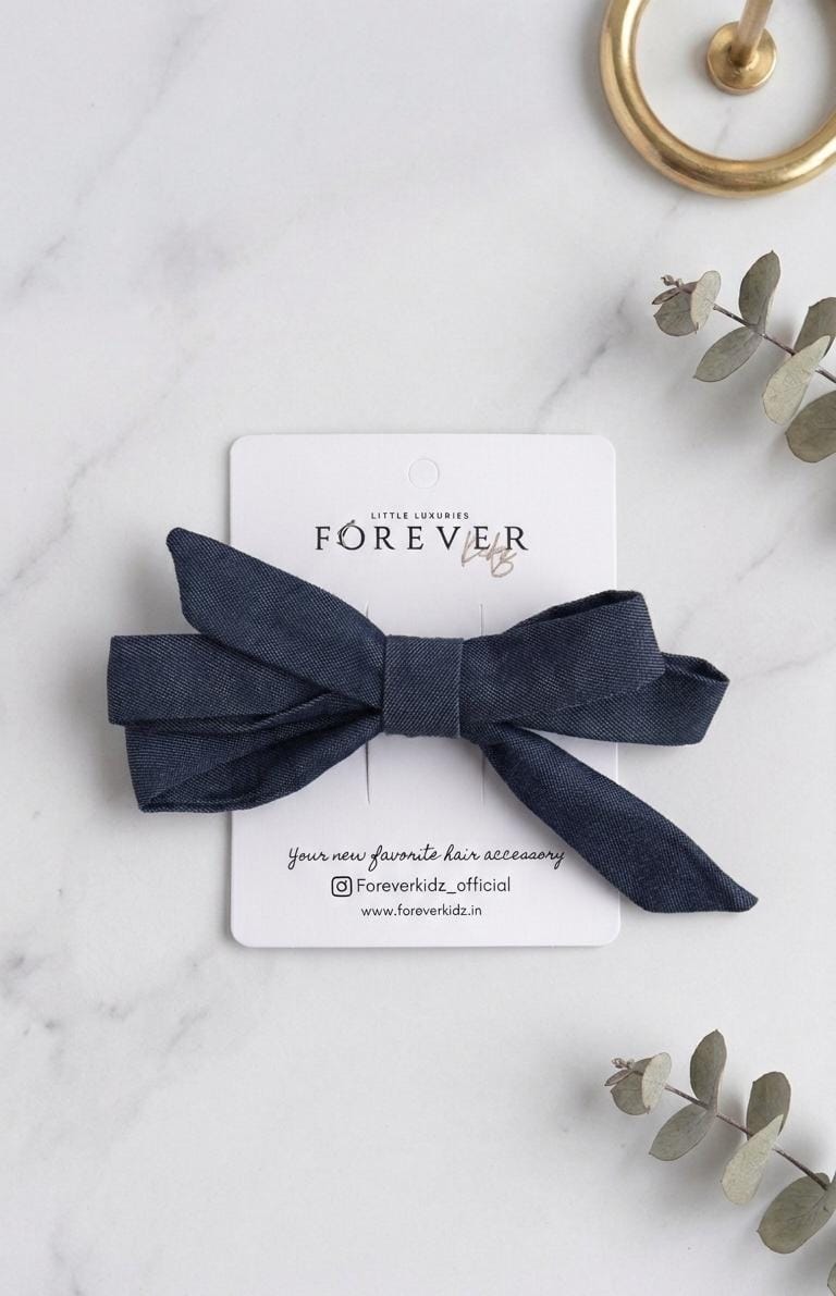 Add a touch of effortless style to your little one's look with this charming denim bow clip. Crafted from soft, durable denim fabric, it features a classic bow design that pairs beautifully with any outfit. The secure clip mechanism keeps hair in place throughout the day, making it perfect for playdates, school, or special occasions. Lightweight and comfortable, this accessory is an essential addition to any child's collection.