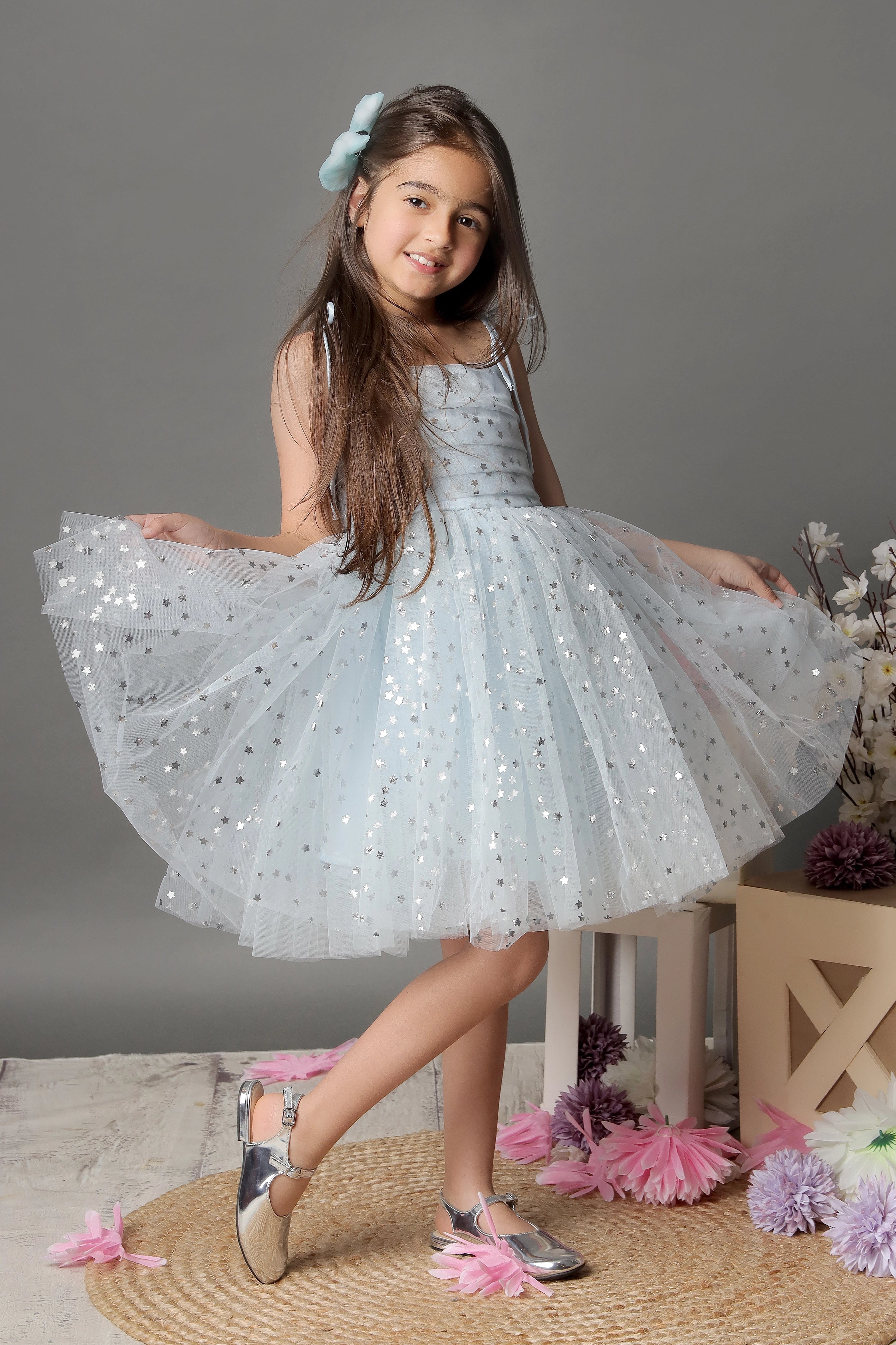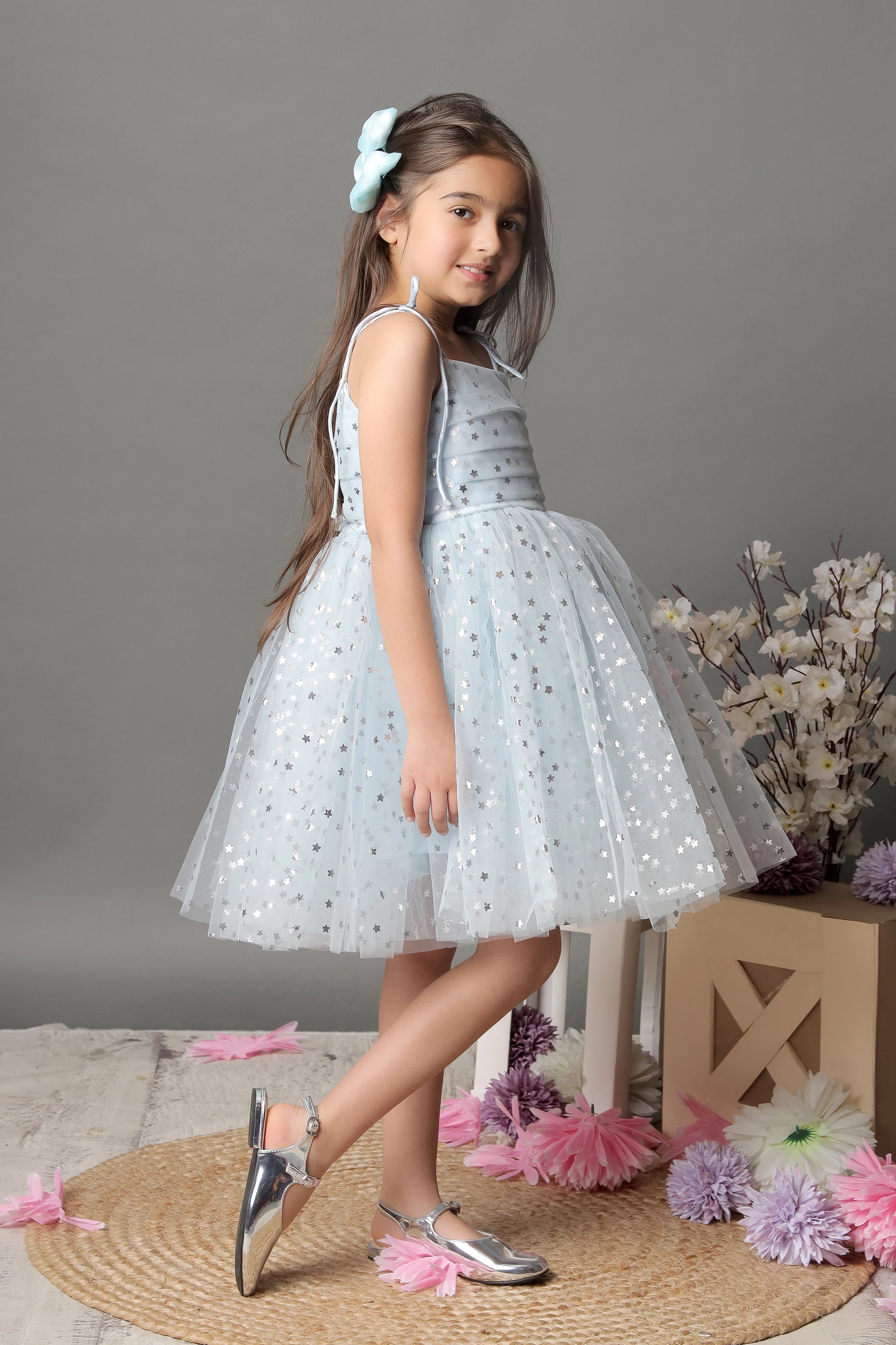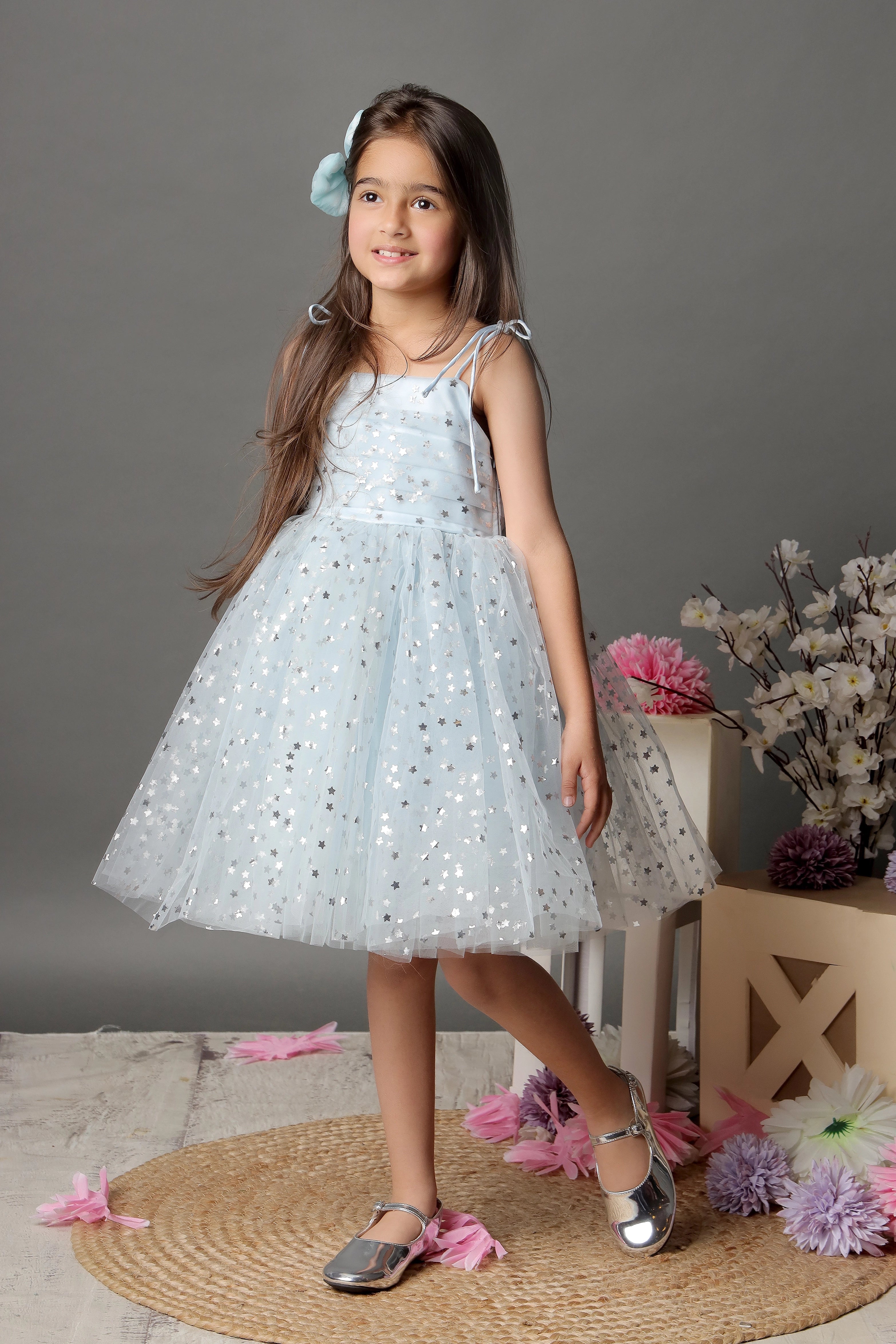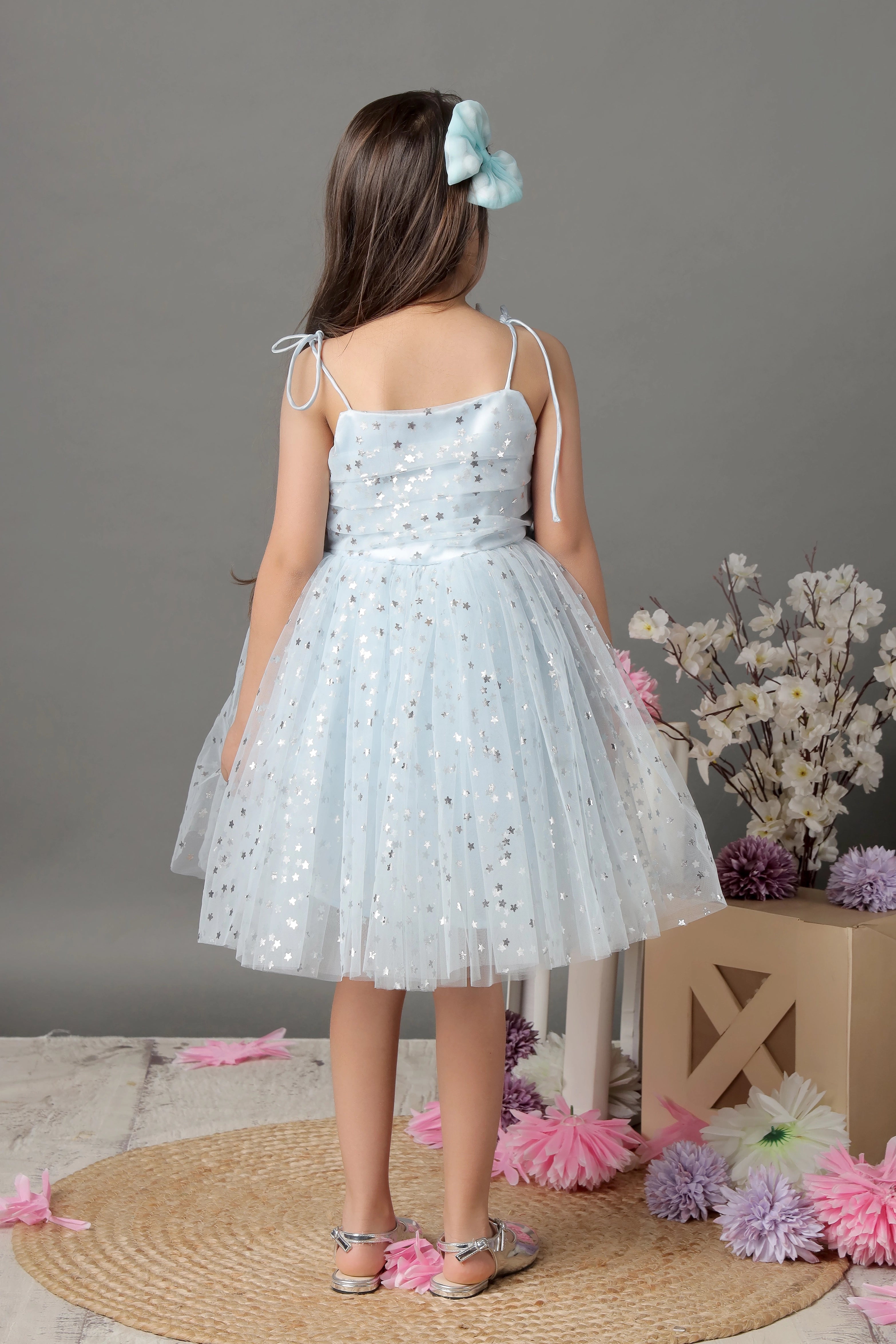 - This elegant star dress adds a touch of glamour to any special occasion. The tie-up knots provide the perfect, comfortable fit for all little divas.