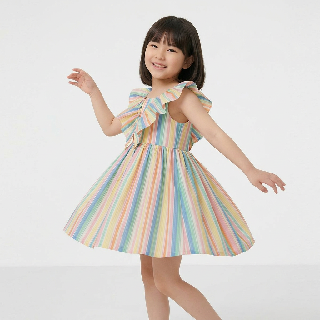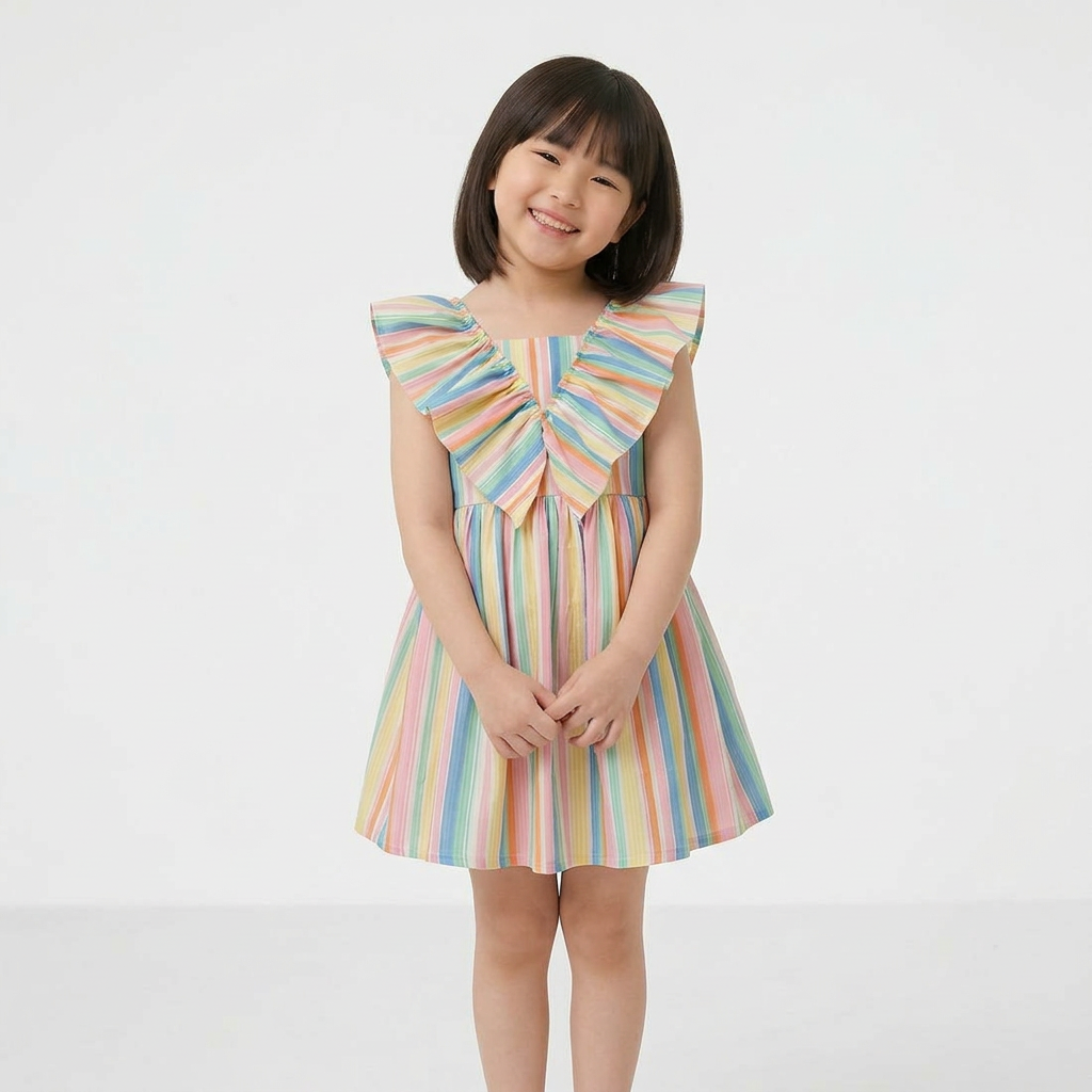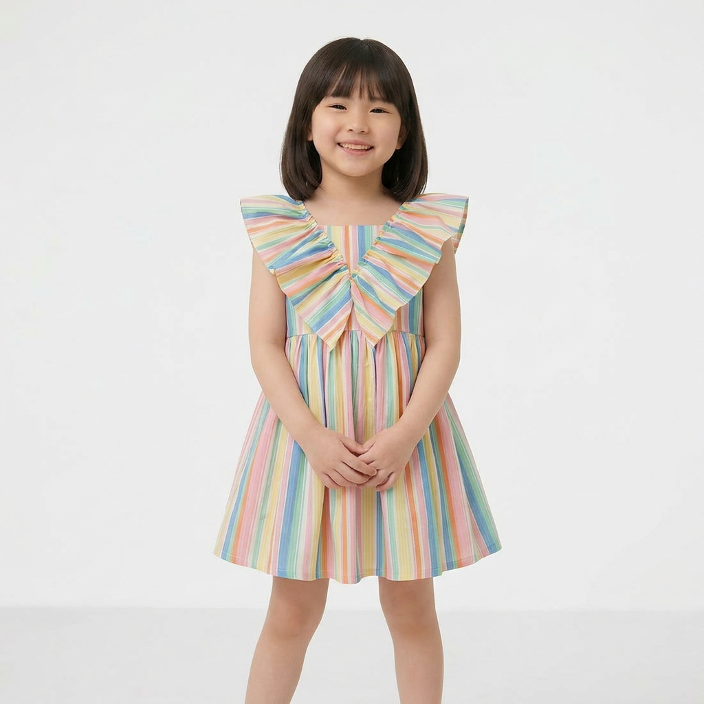Playful striped design meets timeless elegance in this charming ruffle dress. Perfect for everyday wear or special occasions, the sleeveless silhouette keeps little ones cool and comfortable while the ruffled details add a touch of whimsy. The regular fit ensures easy movement for active play, while the short length is ideal for warm weather. A versatile wardrobe essential that transitions seamlessly from casual outings to celebrations.