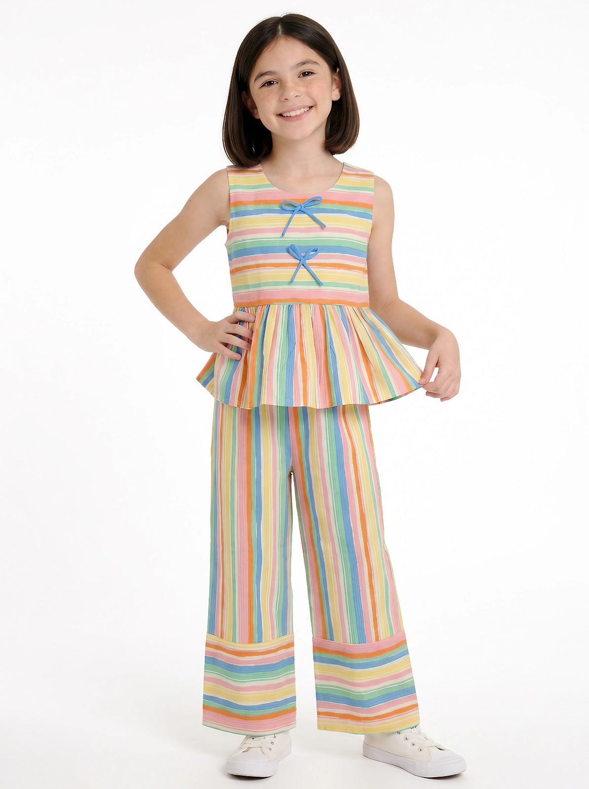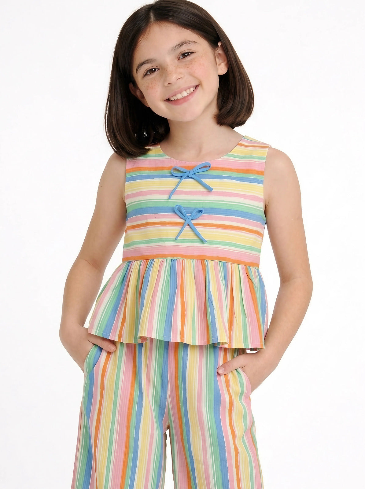 Brighten up your little one's summer wardrobe with this charming striped coord set. Perfect for warm days and casual outings, the set features a fresh color palette and comfortable regular fit that moves with active kids. The sleeveless design keeps things cool and breezy, while the full-length silhouette offers practical coverage. Mix and match the pieces for versatile styling throughout the season. Ideal for everyday wear, playdates, or relaxed family gatherings. Crafted for comfort and durability, this coord set combines style with practicalitya summer essential that grows with your child's adventures.