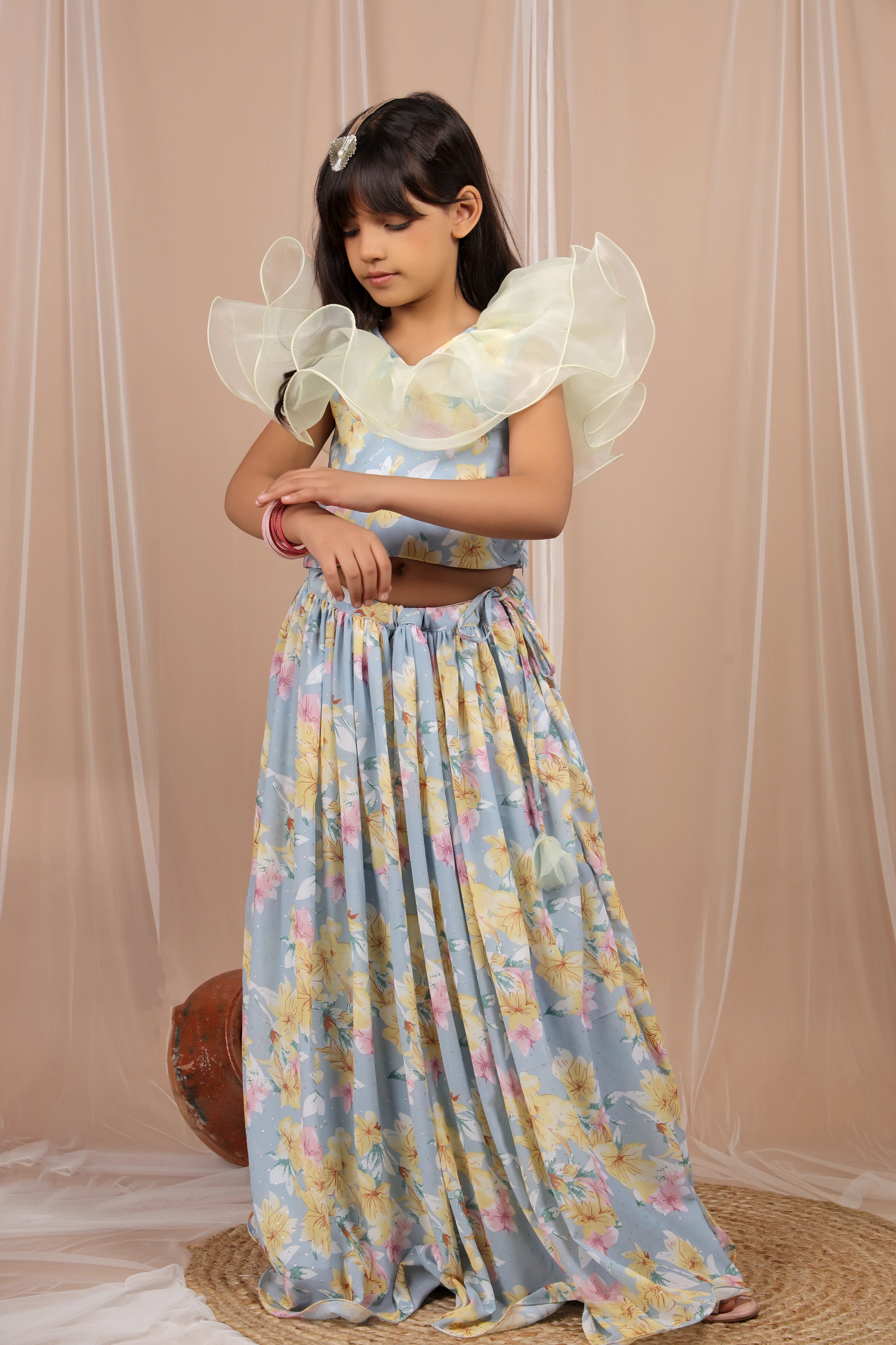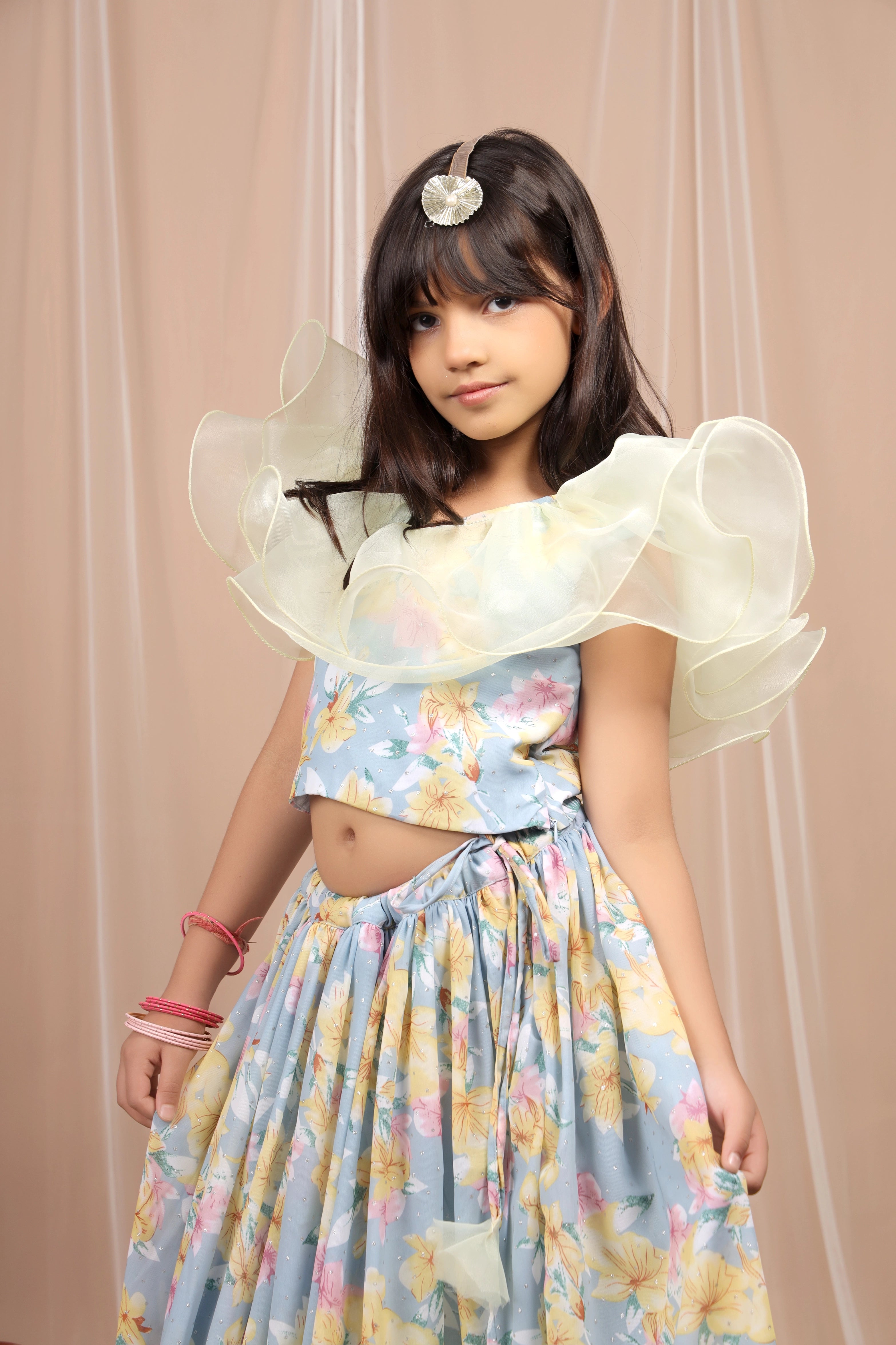- This beautiful lime printed lehenga choli set absolutely gorgeous and perfect for a festive occasion and she is sure to be as pretty on a special festival.