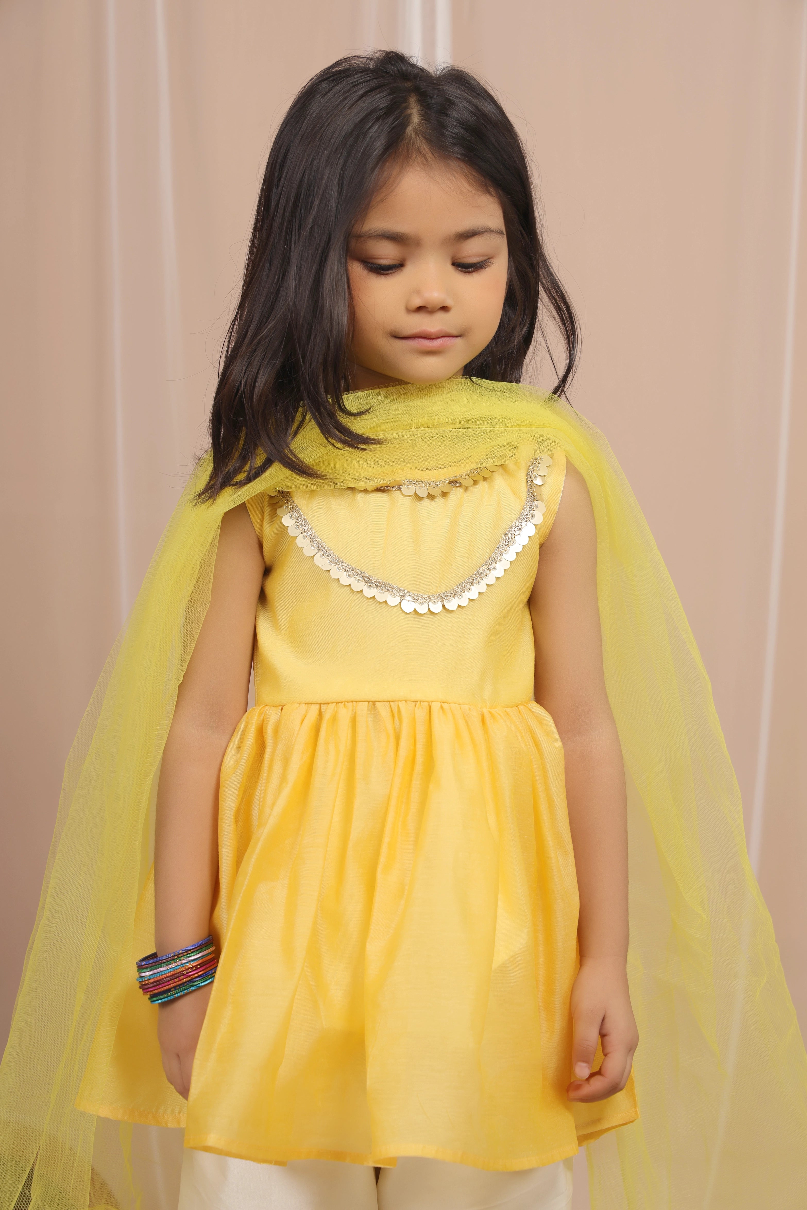 - Gorgeous Yellow sharara set for little divas to look absolutely stunning on their festival.