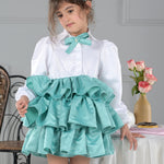 - Experience the ultimate tea time with our Tea Time Mint Frilly Dress.