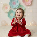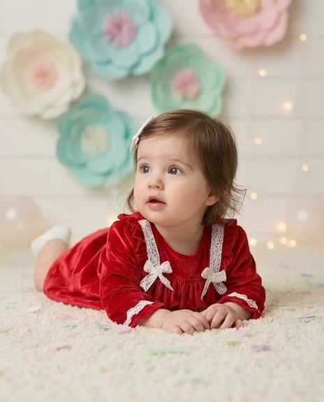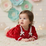 Crafted with delicate lace detailing and a rich crimson hue, this infant dress combines classic sophistication with modern comfort.