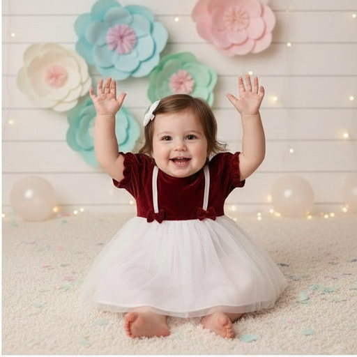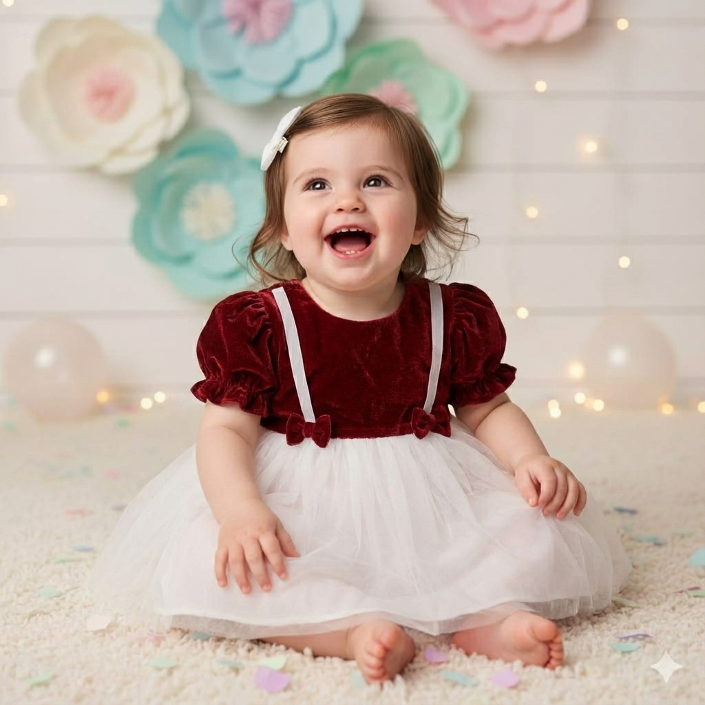 This elegant maroon frock wraps your infant in understated luxury and warmth.