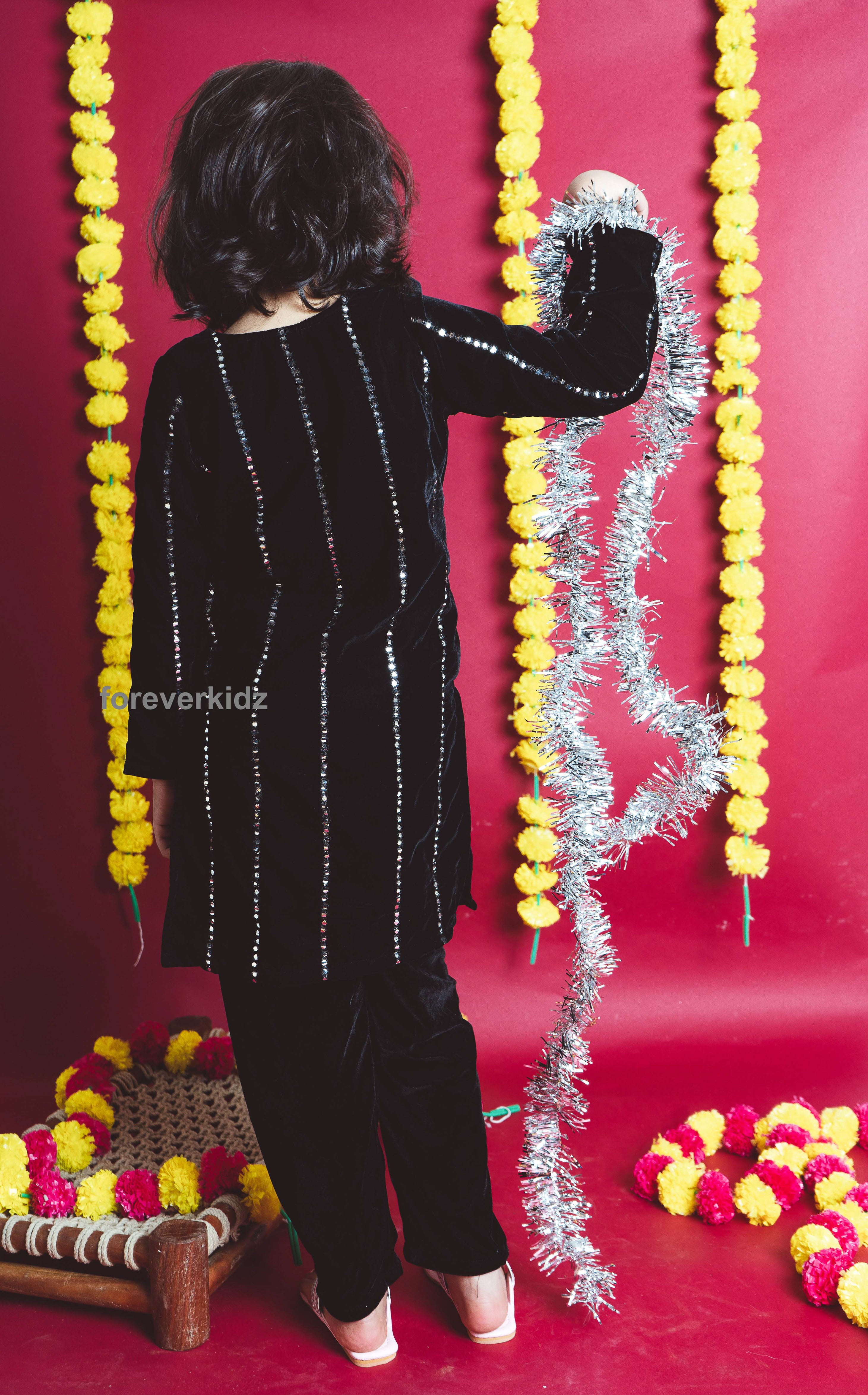 - This beautiful velvet style suit is perfect for your lil princess to steal the attention on special festive occasions.