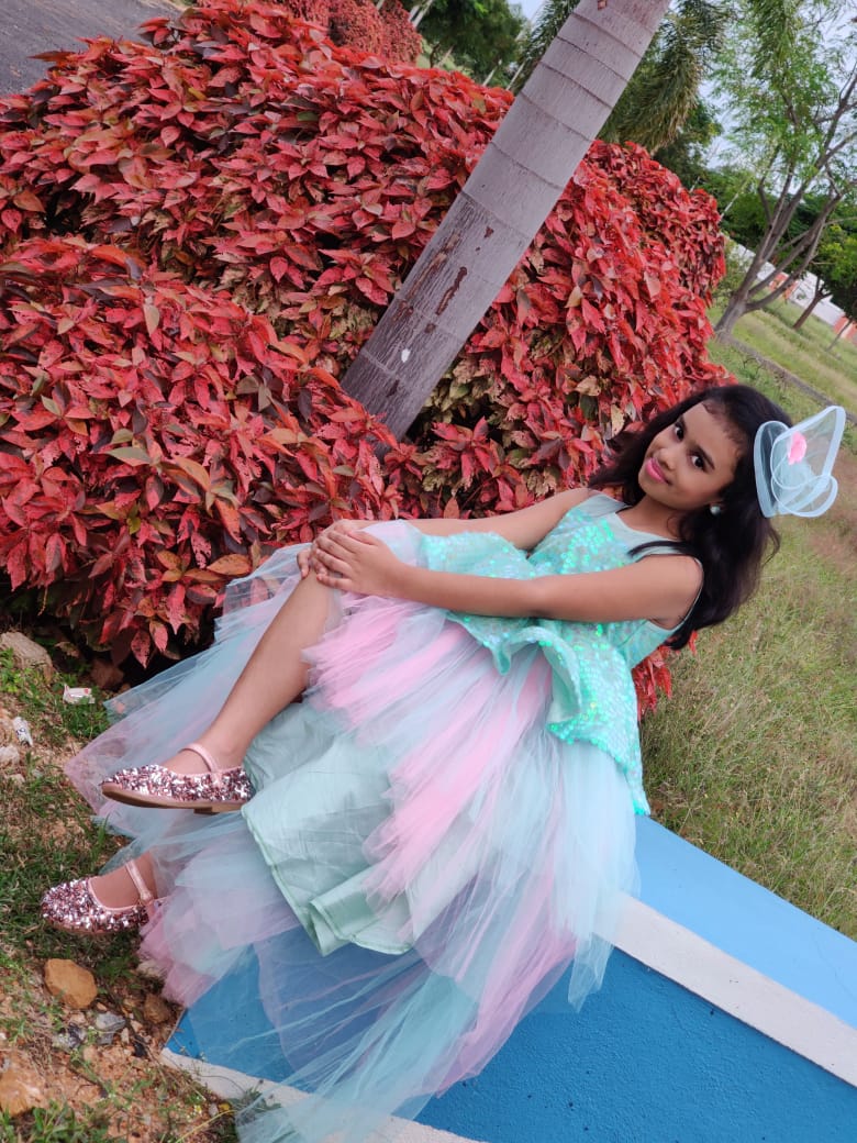 - This beautiful birthday party dress is made from pastel color tulle with satin sequin top adding just the right glitz to the dress.